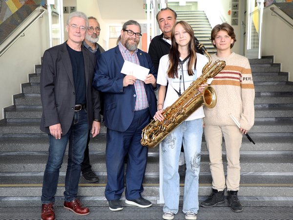 Eröffnung der Wanderausstellung zur EU im Rathausfoyer vor Roll-ups zu EU-Themen