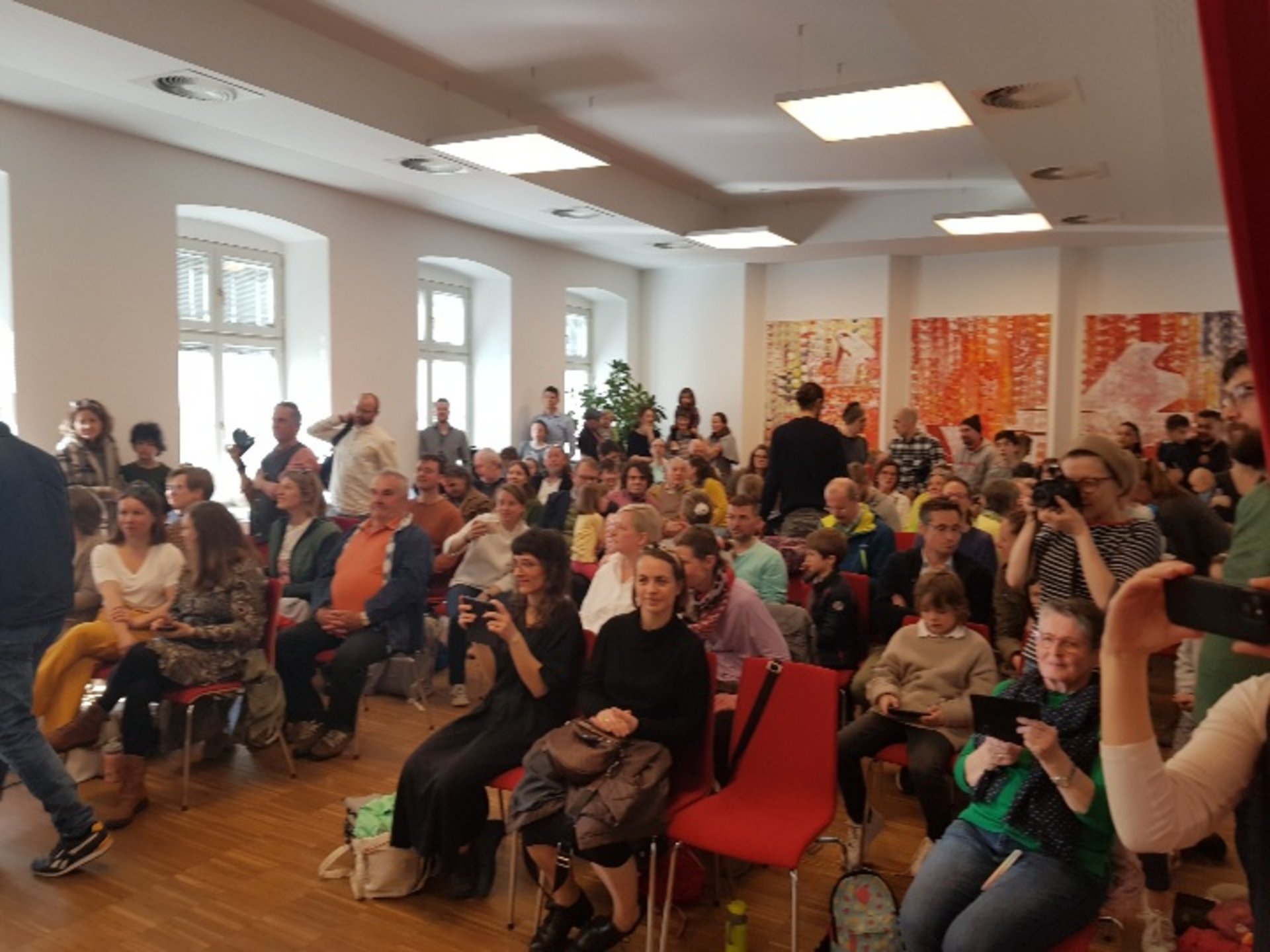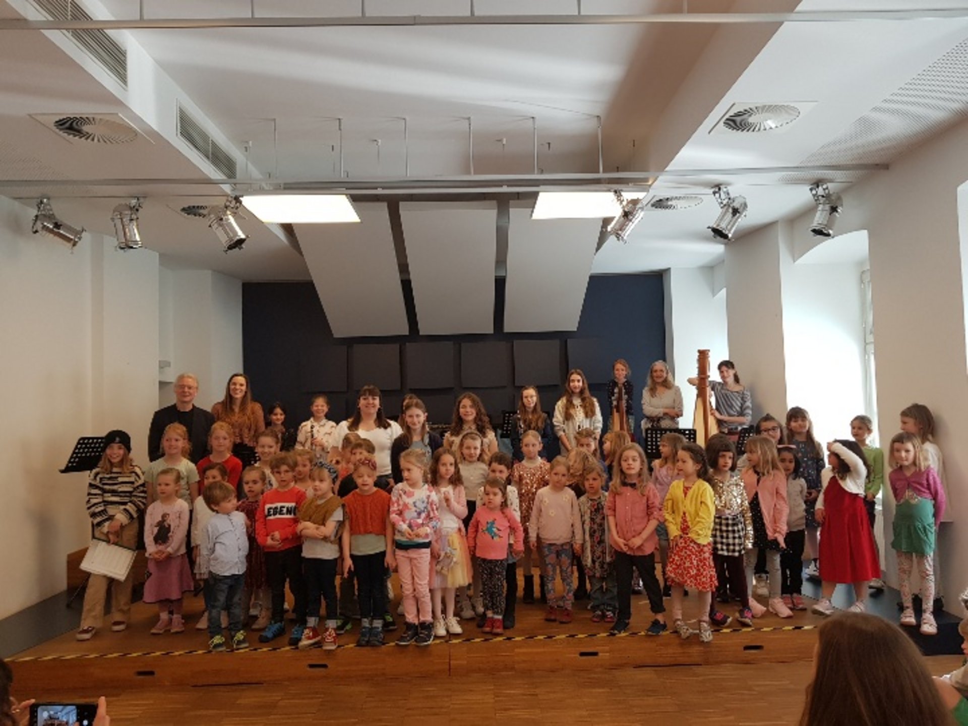 Eröffnet wurde dieser Tag durch die Präsentation "An der schönen blauen Donau", die von den EME-Gruppen, Mini- und Kinderchor, einem Ballettensemble und einem kleinen Orchester gestaltet wurde. Im Anschluss hatten die Kinder die Gelegenheit verschiedene Musikinstrumente kennenzulernen und auszuprobieren. Alles in allem: ein bunter Vormittag, ein Haus voller Kinder und viele strahlende Gesichter!