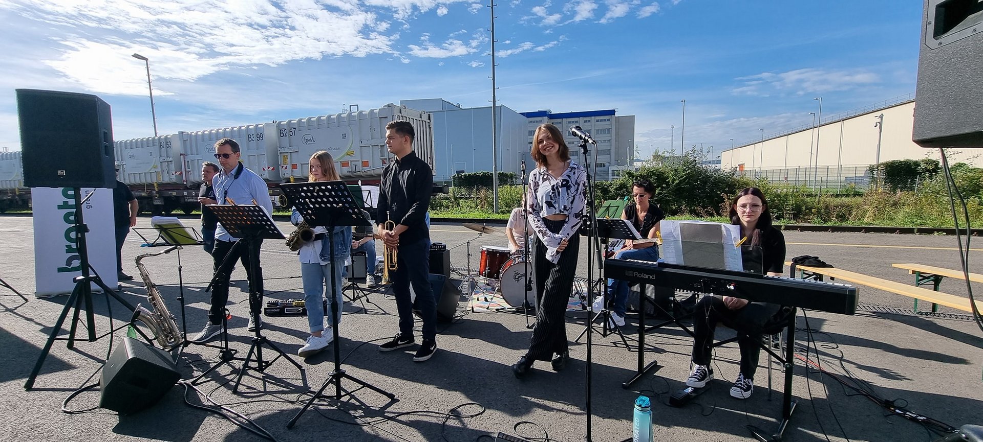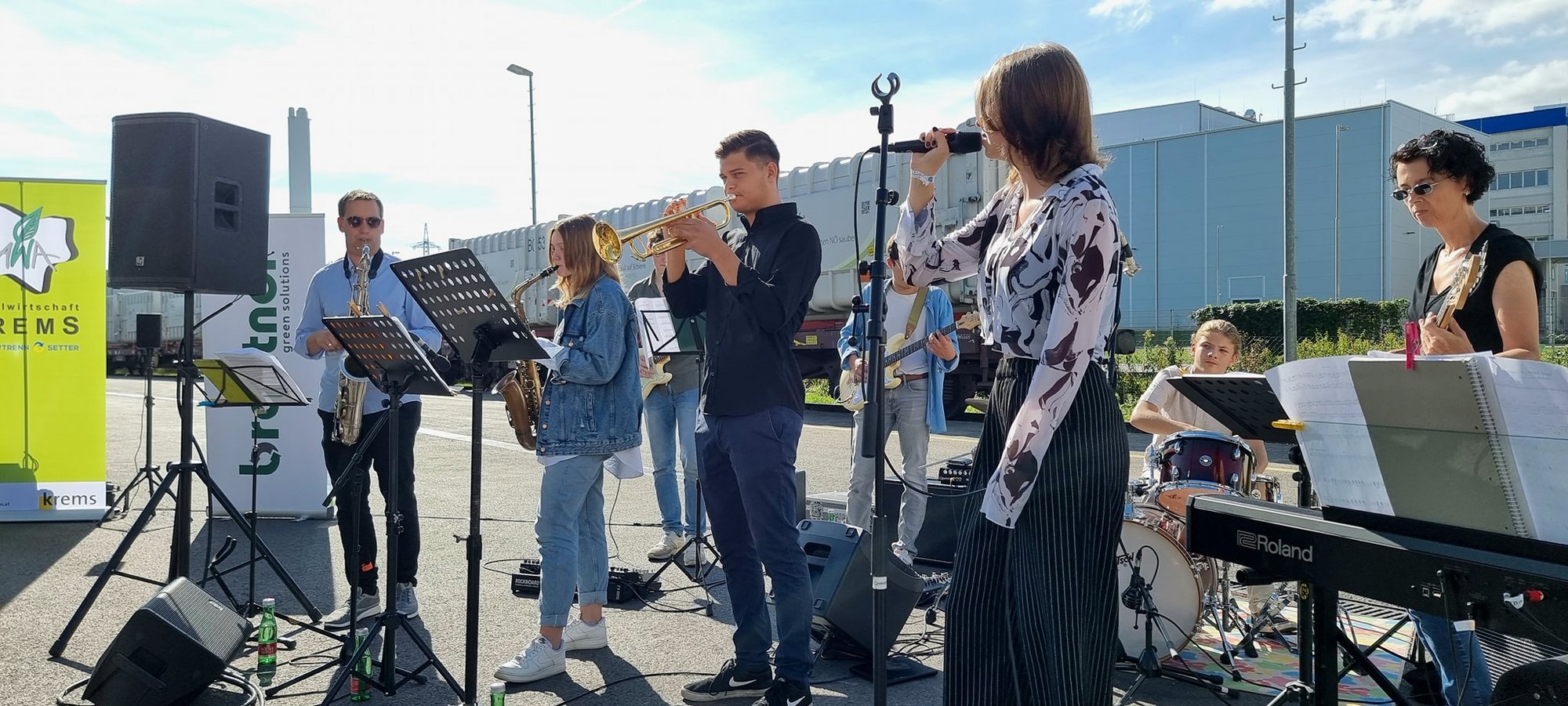 Am Freitag, 22.9., spielte die Musikschul BigBand unter der Leitung von Bernhard Wiesinger im Rahmen der 20 Jahr Feier der Umladestation am Gelände der Firma Brantner.