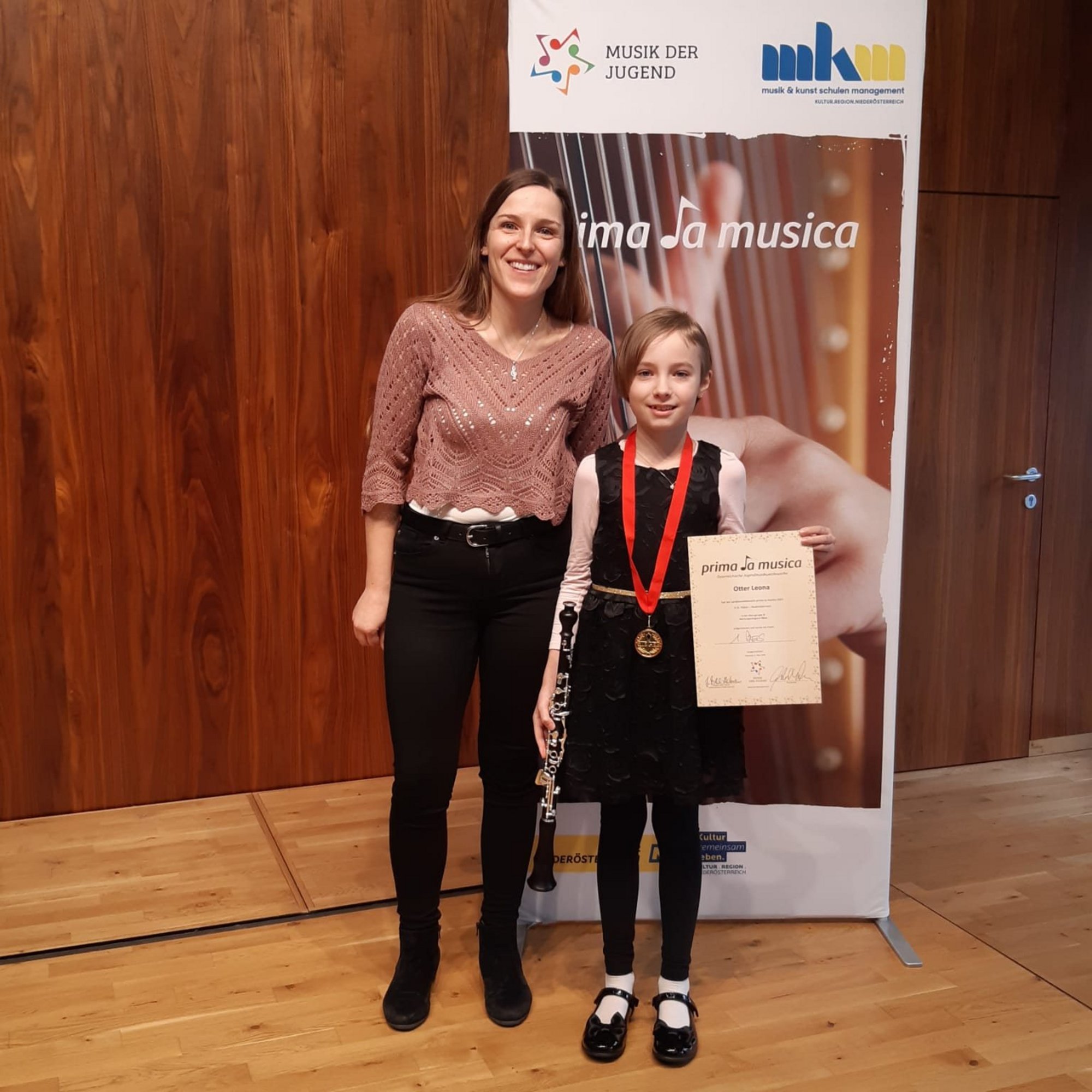 Die junge Oboistin Leona Otter hat in der Altersgruppe B einen 1. Preis erspielt. Leona hat durch die Bläserklasse der Volksschule Stein zur "Wiener Oboe" gefunden und lernt dieses Instrument erst seit wenigen Monaten. Umso beachtlicher ist ihre tolle Leistung! Betreut wurde sie dabei von ihrer Oboenlehrerin Mag. Manuela Steindl BA und Mag. Karin Heinisch hat sie beim Wettbewerb am Klavier begleitet.