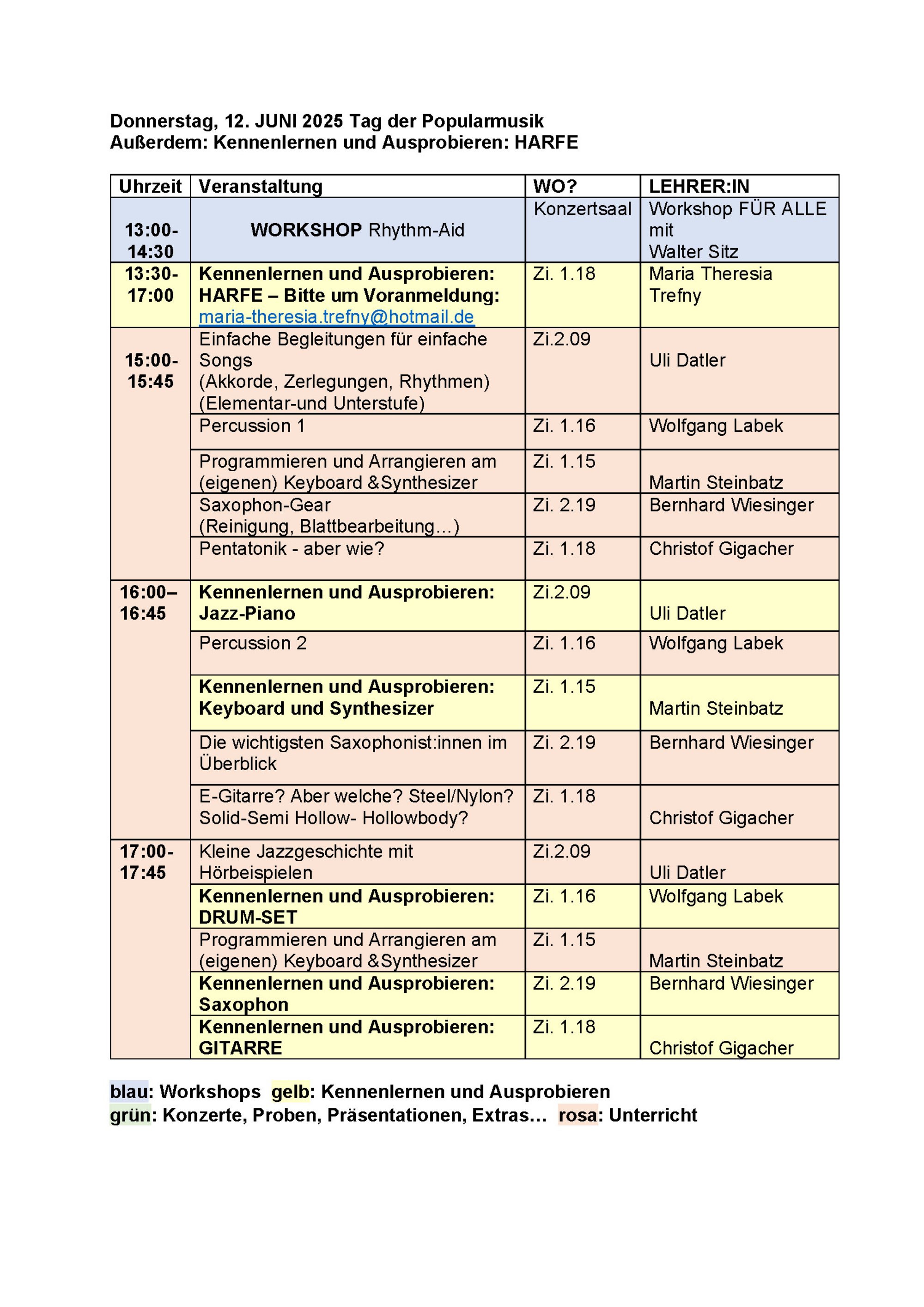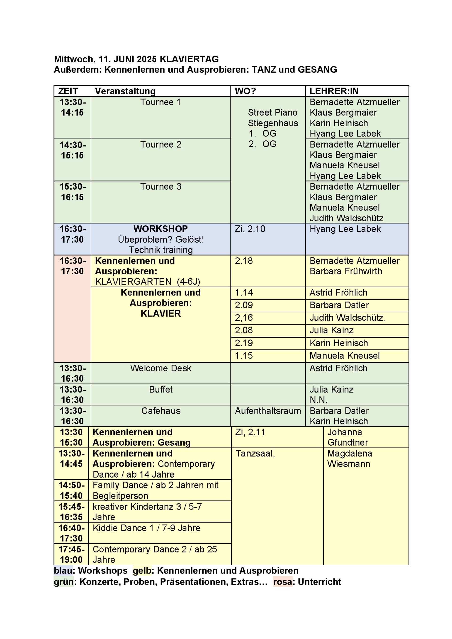 Von 10. bis 16. Juni finden in der Musikschule Krems die Tage der offenen Tür statt. In diesem Zeitraum präsentieren die Instrumentalabteilungen ihre Arbeit. Gleichzeitig hat die Musikschule für ihre Schüler:innen Workshops, Aufführungen und Vorträge im Programm, die das Unterrichtsangebot lehrplangemäß ergänzen. Auch außenstehende Interessierte sind willkommen!