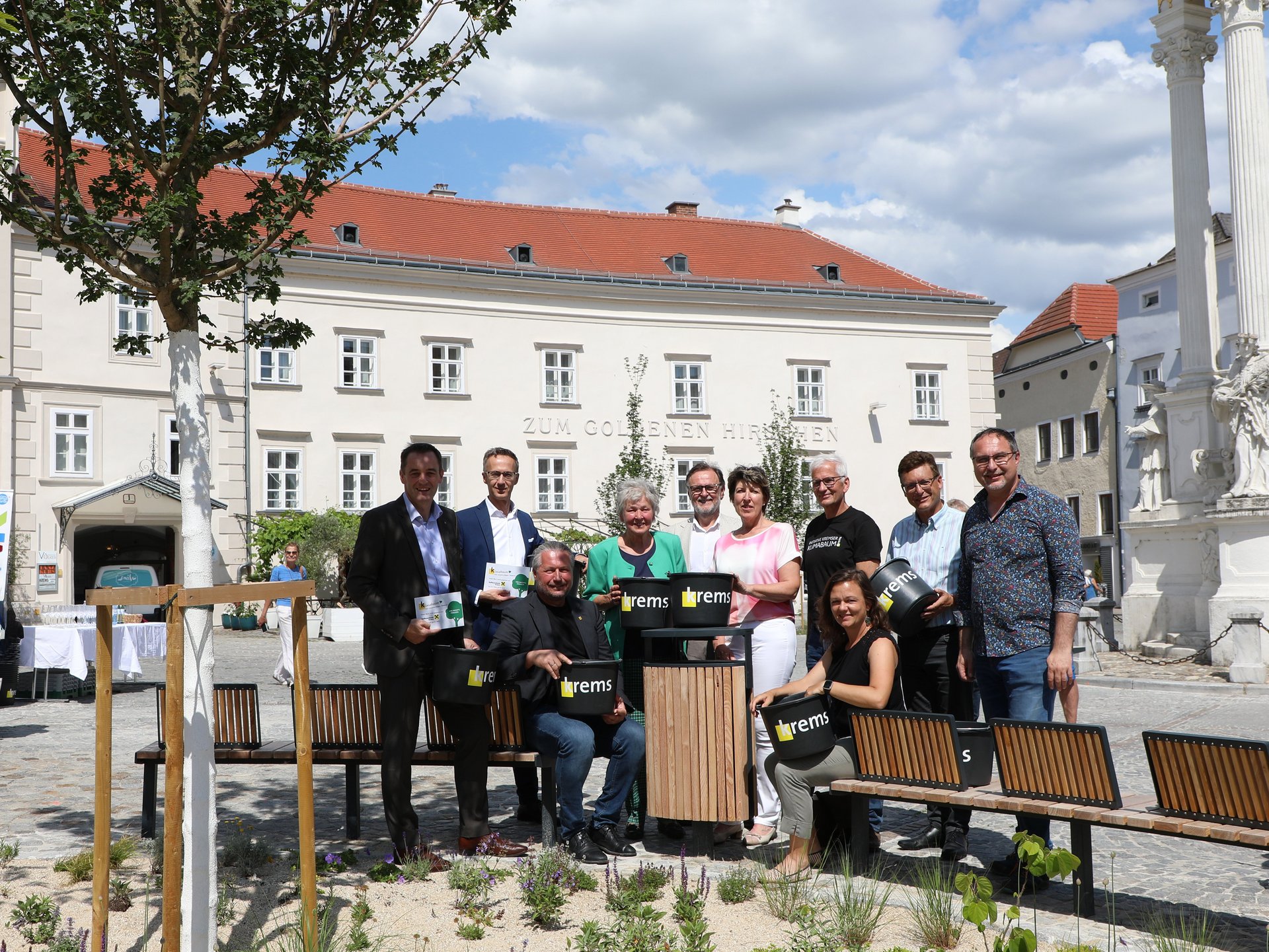 Bürgermeister Peter Molnar dankte bei der Jubiläumsfeier allen Baumpat:innen herzlich für ihre Unterstützung: „Sie ermöglichen, dass wir in Krems ein neues Stadtklima bekommen.“ Ziel sei, insgesamt 100 Klimabäume im Stadtgebiet zu pflanzen. Als kleines Dankeschön erhielten die Pat:innen einen der neuen „Kremser Gießkübel“ überreicht.