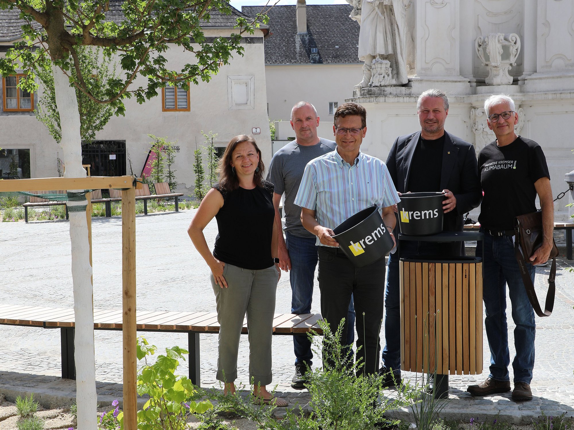 Vor vier Jahren riefen Walter Gangl und Kurt Lenitz die „Initiative Kremser Klimabaum“ ins Leben. Ihr Ziel: Krems noch grüner und lebenswerter zu gestalten. Mittlerweile tragen insgesamt acht Ehrenamtliche das Projekt – neben den Gründern setzen sich noch Siegrun Karner, Tina Weiss, Uschi Altmann, Siegfried Undesser, Erhard Seif und Franz Dorn für mehr Grün im Stadtgebiet ein. Gemeinsam mit dem Kremser Stadtgartenamt geben sie Unternehmen, Vereinen und Privatpersonen die Möglichkeit, Patenschaften für sogenannte Klimabäume zu übernehmen. Dabei handelt es sich um besonders robuste Baumarten, die gut mit dem urbanen Klima zurechtkommen. „Wir stehen aktuell bei 52 Patenschaften, was ein schöner Erfolg ist“, freut sich Walter Gangl über den Erfolg der Initiative. 50 Bäume wurden bereits gepflanzt, die neuesten kamen am Dreifaltigkeitsplatz dazu. Grund genug, dieses Jubiläum dort gebührend mit zahlreichen Pat:innen zu feiern.