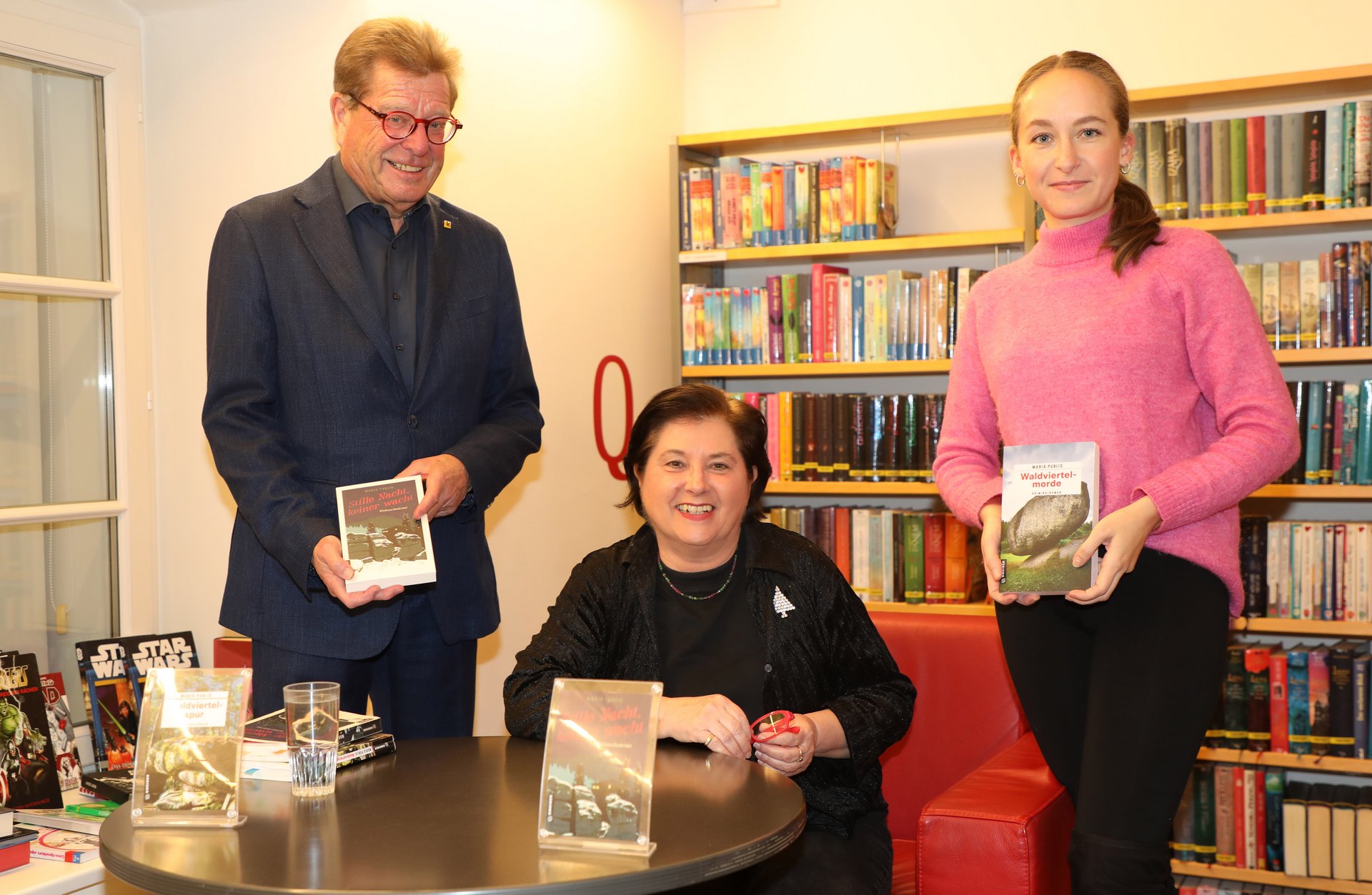 Am 8. Dezember feierten Lesebegeisterte den Tag des Krimis. Die Bücherei lud aus diesem Anlass schon am Abend davor zur Lesung mit Krimi-Autorin Maria Publig. Sie las nicht nur aus ihrem fesselnden Buch „Stille Nacht, Keiner wacht“, wo sie ihre Zuhörer:innen in eine dunklere Seite der besinnlichen Weihnachtszeit führte, sondern begeisterete auch mit ihrem skurril und spannenden Buch "Waldviertelmorde".