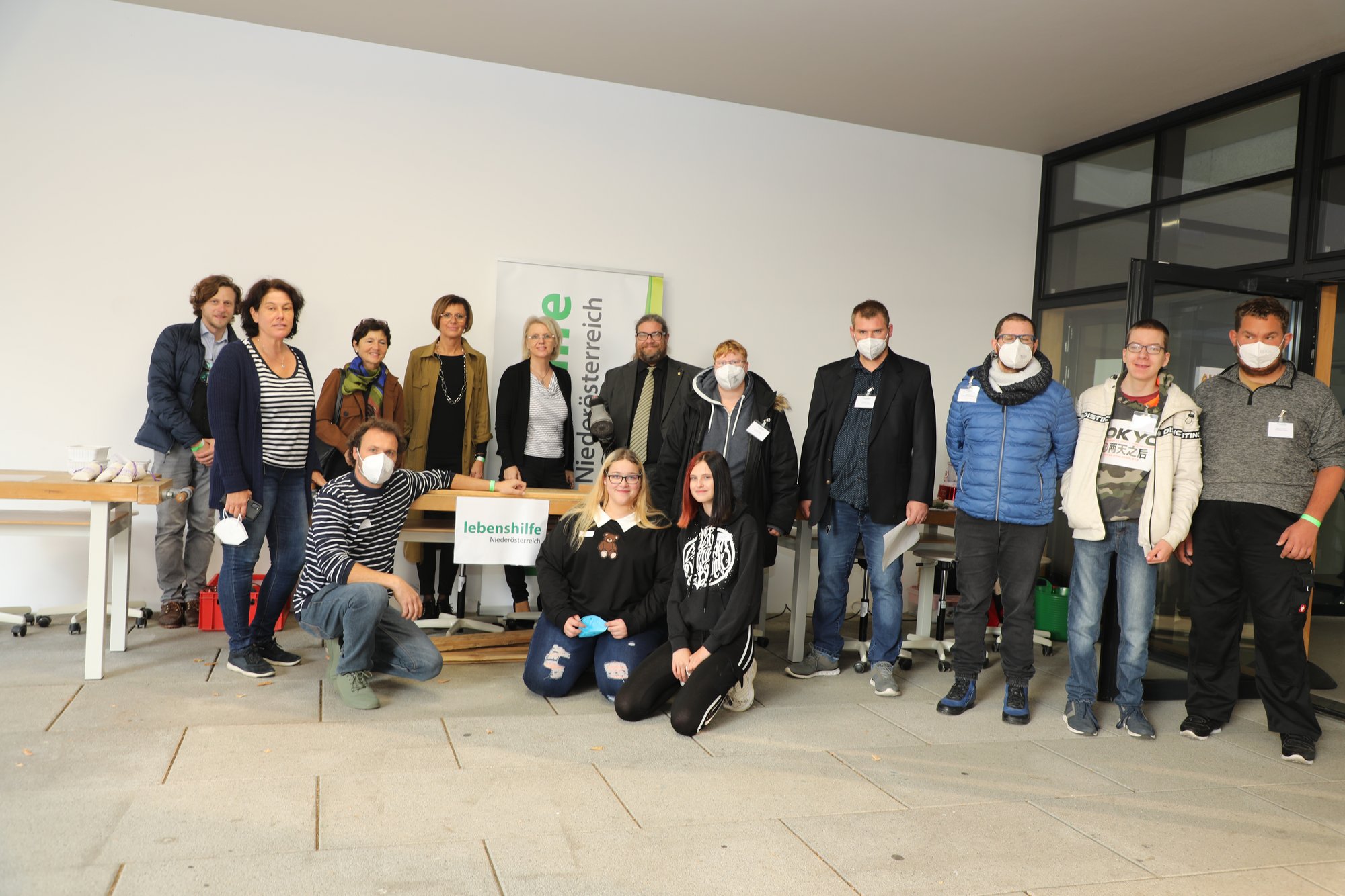 Foto: Erste Ausbildungsbörse an der ASO Krems: Bildungsamtsleiter Mag. Georg Braunschweig, Eva Fuchshofer, Schulqualitätsmanagerin Andra Strohmayer, Thomas Schier, Regina Holzer, GR Mag. Klaus Bergmaier mit dem Team der Lebenshilfe NÖ. © Stadt Krems