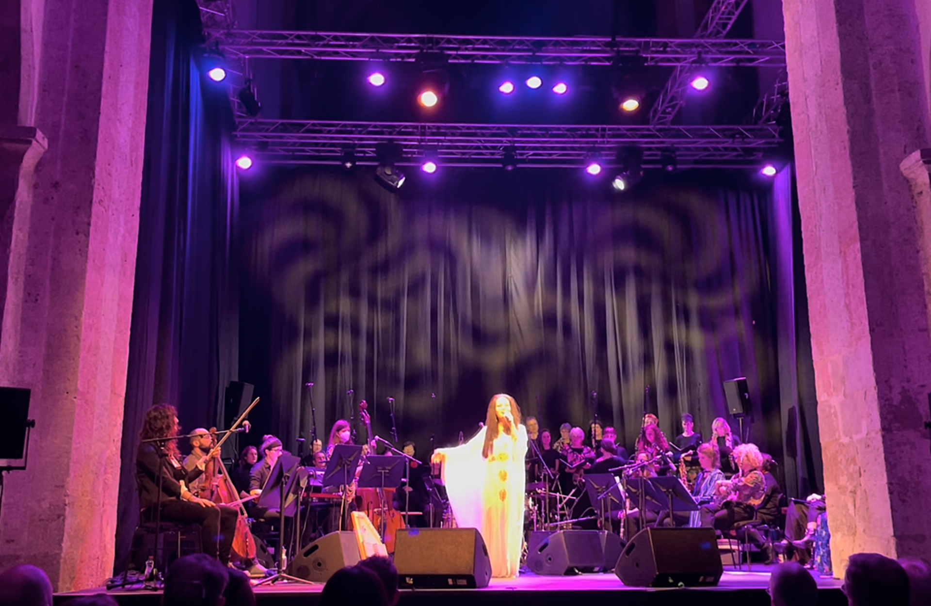 Mit „Imago Deae“ (wörtlich „das Bildnis der Göttin“) setzt das Festival einen starken Auftakt mit fast 50 Musikerinnen, die aus verschiedenen Klangwelten zueinander finden und gemeinsam etwas Neues kreieren. Syrische, bosnische, persische, kurdische, kroatische und sephardische Lieder der vier solistischen Sängerinnen und der beiden Chöre sind zusammen mit den Kompositionen von Beate Wiesinger die Basis für ungewöhnliche Arrangements.