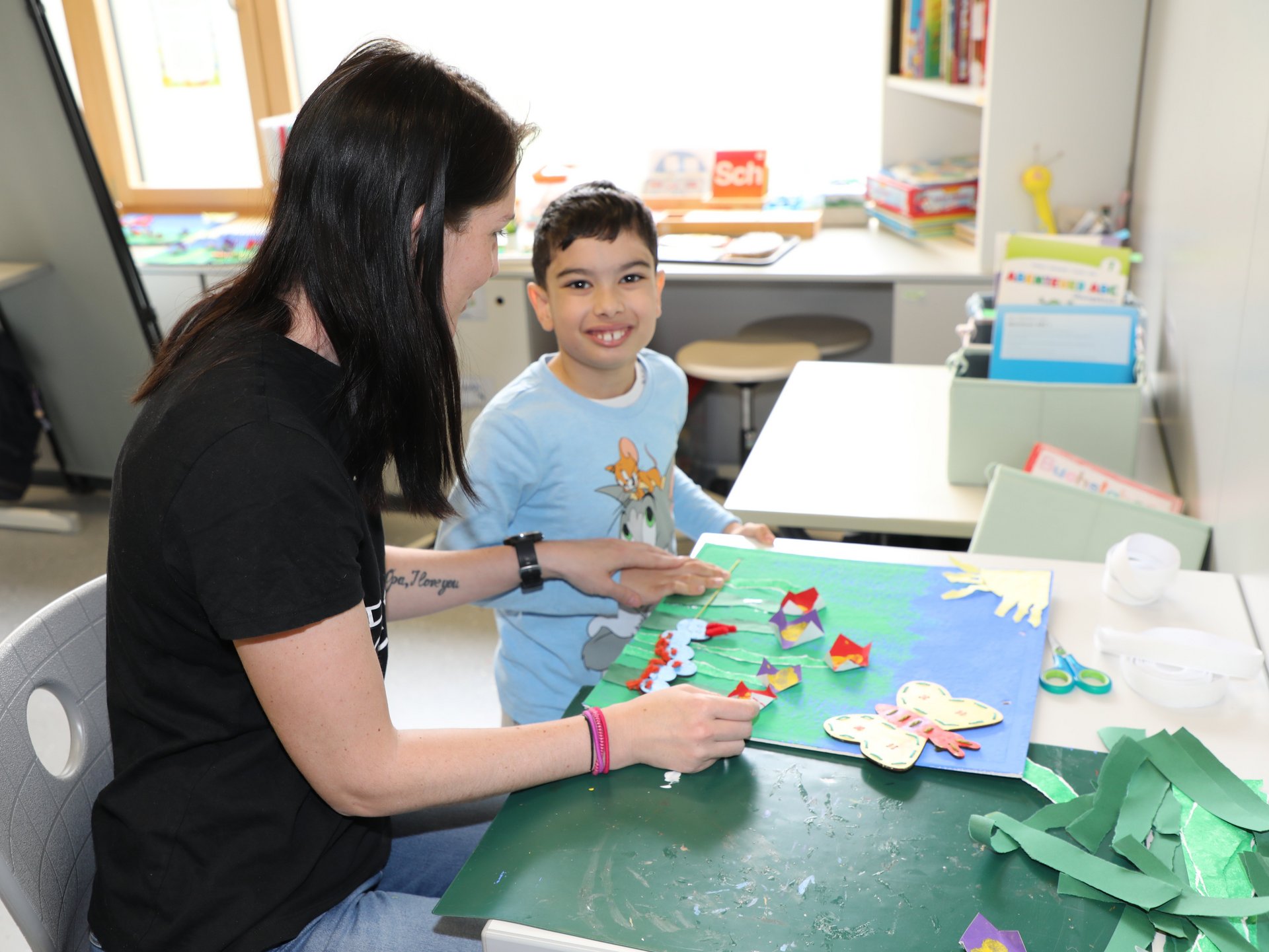 Ein Großteil der zwölf Klassen ist mit zwei Lehrkräften oder einer Pädagogin und einer Schulassistentin besetzt, die somit die Möglichkeit haben, individuell auf jedes Kind einzugehen. Denn die Kinder und ihre Bedürfnisse stehen in der Kleingruppenschule im Zentrum, eine wertschätzende Begegnung hat absolute Priorität. Der Tagesablauf ist klar vorgegeben, die Kinder sollen Geborgenheit und Halt erfahren. „Es ist total schön zu sehen, wie sich die Kinder entwickeln und wieder aufblühen“, freut sich Regina Holzer, die seit 21 Jahren an der Schule unterrichtet und ihr mittlerweile seit vier Jahren vorsteht.