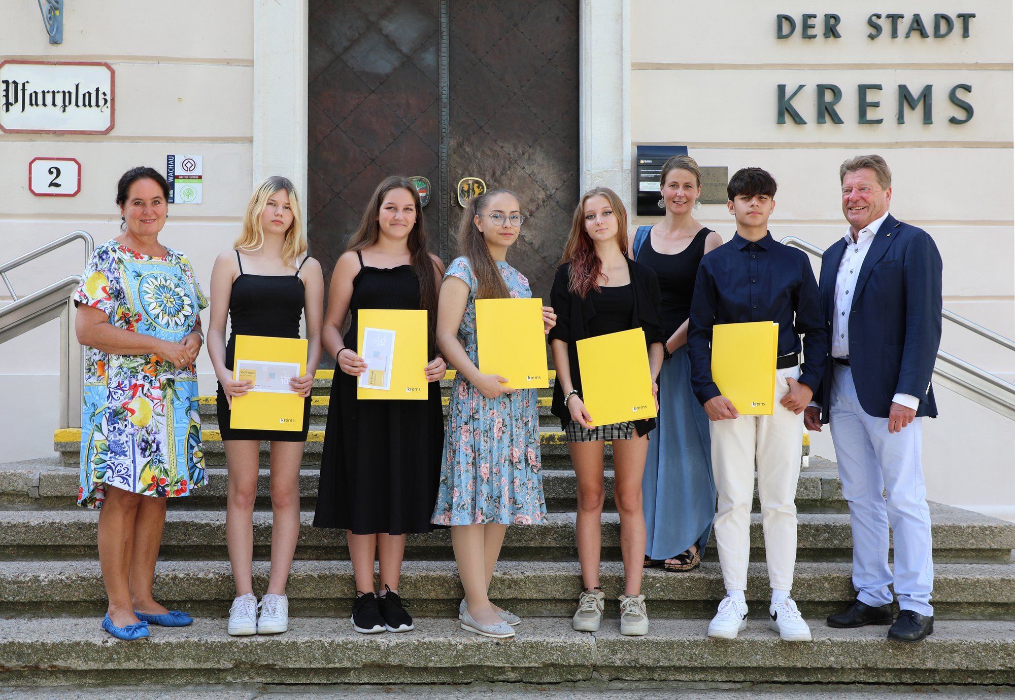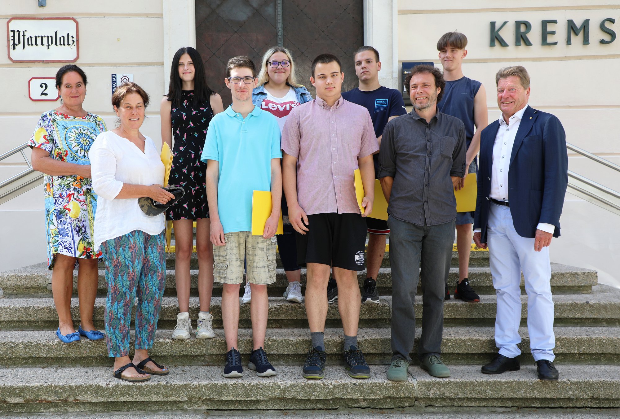 Fotos: Stadtrat Helmut Mayer und Stadträtin Sonja Hockauf-Bartaschek gratulierten den frisch gebackenen AbsolventInnen der Schulen im Schulzentrum Krems (Mittelschule, Polytechnische Schule und ASO). © Stadt Krems