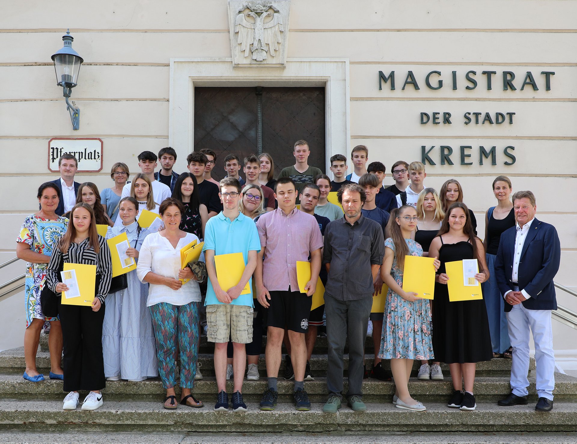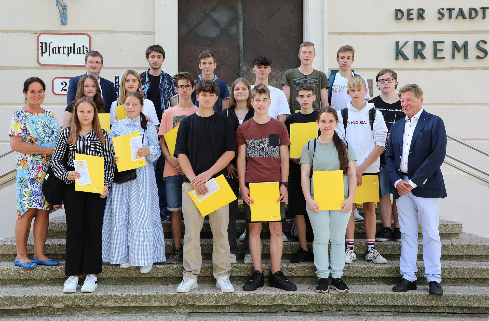 „Das Ende der Pflichtschulzeit markiert auch einen Neuanfang: Für Ihren weiteren Bildungs- und Lebensweg wünschen wir Ihnen alles Gute! In der Schule haben Sie das nötige Rüstzeug für eine erfüllende Karriere erworben“, sagte Stadtrat Helmut Mayer, der die frisch gebackenen Absolventinnen und Absolventen in Vertretung von Bürgermeister Dr. Reinhard Resch im Rathaus empfing. Zum ausgezeichneten Schulabschluss gratulierte er Justin Gottwald, Amelie Marchsteiner, Daniel Betz, Pascal Haidl, Leonhard Anton Kretschmayer, David Panholzer, Leon Peuser, Jonas Haselberger, Jan Hütten, Merita Idrizi, Marie-Louise Oberwegner, Marie Pichler, Jonas Prinz, David Blauensteiner, Felix Sebastian Bockberger, Ann-Kathrin Klatzer (alle Polytechnische Schule) sowie Vanessa Burlacu, Yasar Ercan, Medina Ramic, Nathanael Bauer, Kimberley Kienböck und Tiffany Carina Payer (Mittelschule).