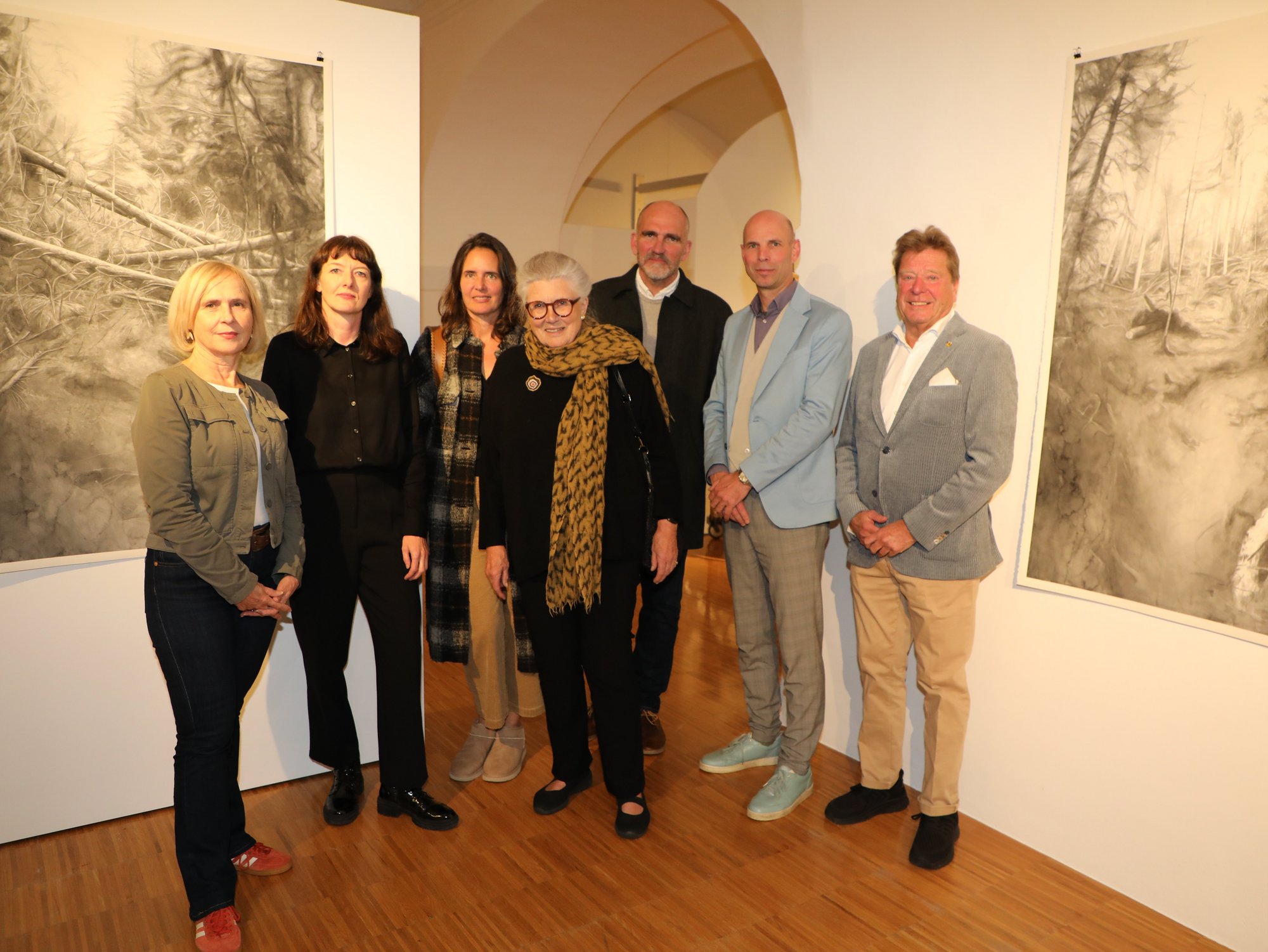 In ihren Arbeiten spürt Alexandra Kontriner den Spuren ökologischer Veränderungen in ihrer Lebensumgebung nach. Großformatige Schwarz-Weiß-Aquarelle von verwüsteten Landschaften aus Osttirol kombiniert sie mit detailreichen Darstellungen von sogenannten Pionierpflanzen – Pflanzen, die nach Zerstörung der Vegetation als erste wieder zu wachsen beginnen. Im Mittelpunkt steht die dreiteilige Arbeit Der Wald, für die Kontriner 2024 den „Erich Grabner Preis für künstlerische Grafik der Stadt Krems“ erhielt. Ergänzt wird die Schau durch Porträts von 28 Insekten und einem Skorpion, die in Österreich als ausgestorben oder stark gefährdet gelten – Sinnbilder für das weltweite Artensterben. „Alexandra Kontriner arbeitet sehr fein, sehr genau, sehr filigran“, würdigte Kulturamtsleiter Gregor Kremser bei der Vernissage die außerordentliche Präzision der Künstlerin und bezeichnete ihr Werk als „künstlerische Dokumentation“. Stadtrat Helmut Mayer würdigte die emotionale Wirkung der Werke: „Die Bilder sprechen alle sehr und regen die Fantasie an.“