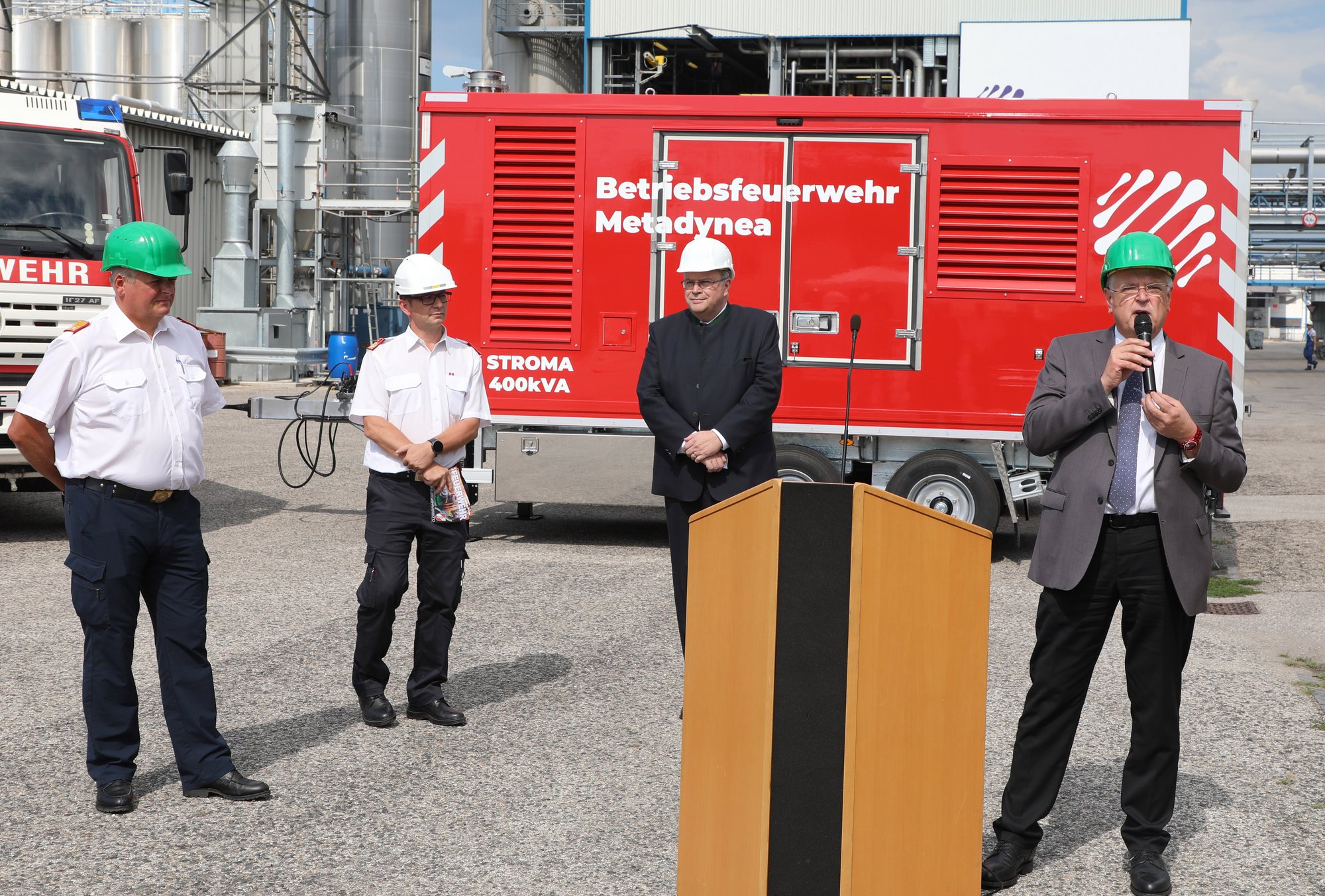 Ein unterbrechungsfreier Stromerzeuger mit einer Dauerleistung 400 kVA wurde im Rahmen eines Festaktes an die Betriebsfeuerwehr des Metadynea Industrieparks in den Dienst gestellt.