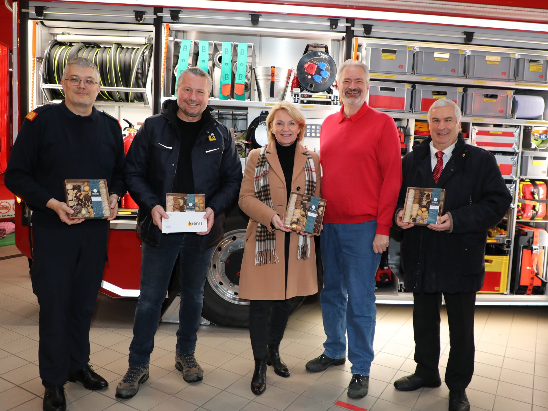 Bürgermeister Peter Molnar, Vizebürgermeisterin Eva Hollerer und der Sicherheitsbeauftragte der Stadt Krems, Gemeinderat Andreas Ettenauer, besuchten heuer Polizei und Feuerwehr, um den Einsatzkräften persönlich für ihr Engagement zu danken. Den Mitarbeiter:innen des Roten Kreuzes sowie der beiden Justizanstalten Krems und Stein hatte der Bürgermeister bereits im Vorfeld Weihnachtsgrüße und Präsente der Stadt überbringen lassen.