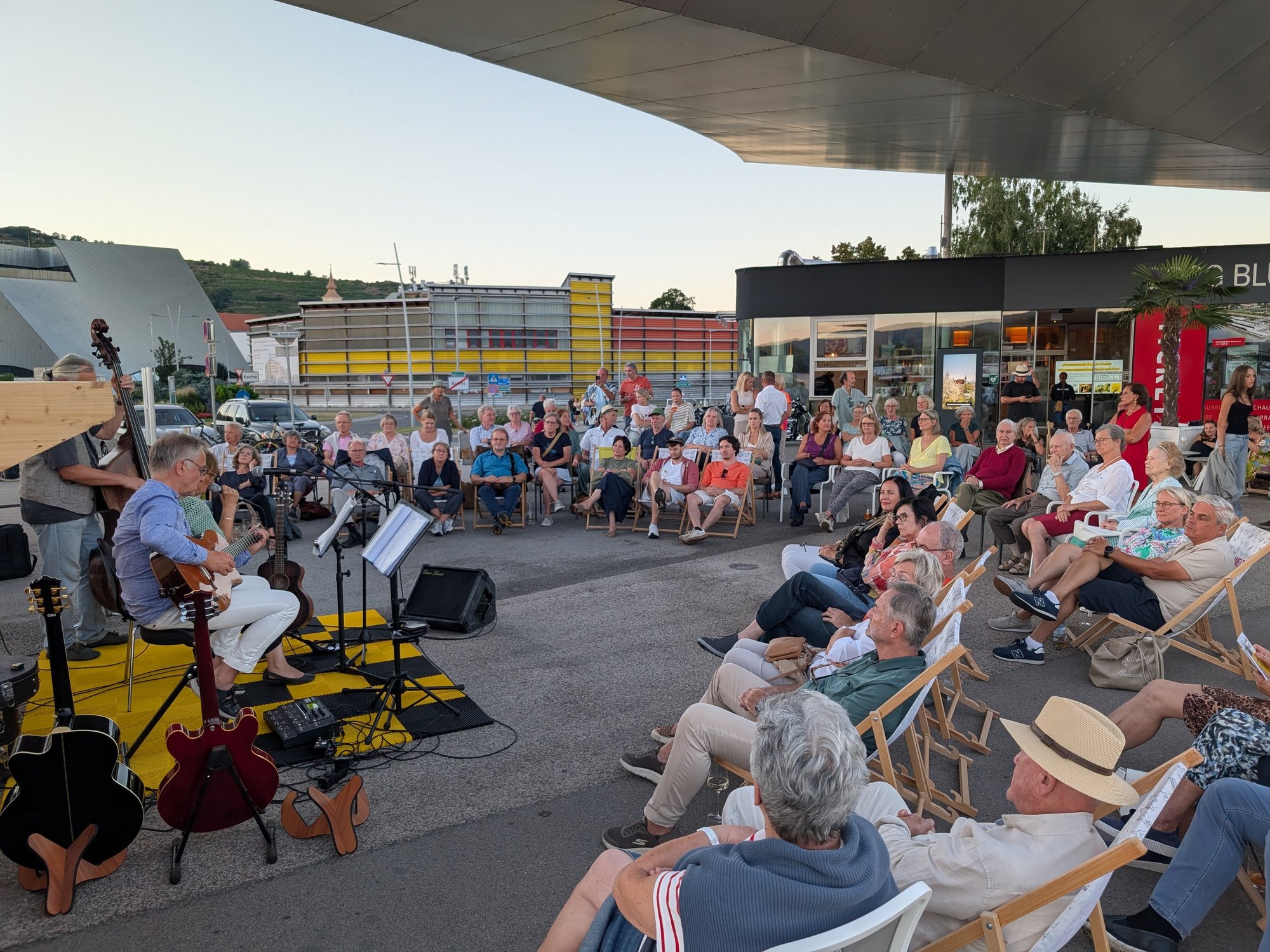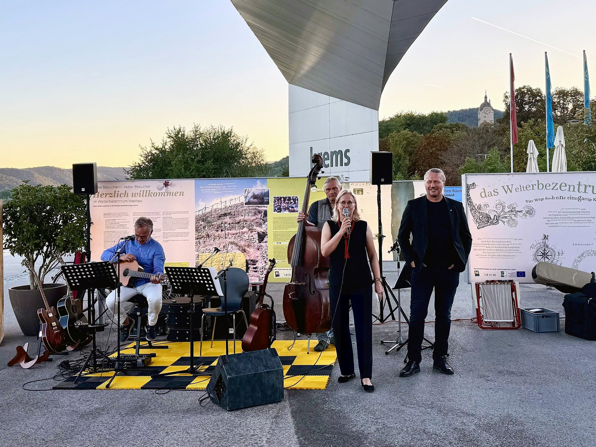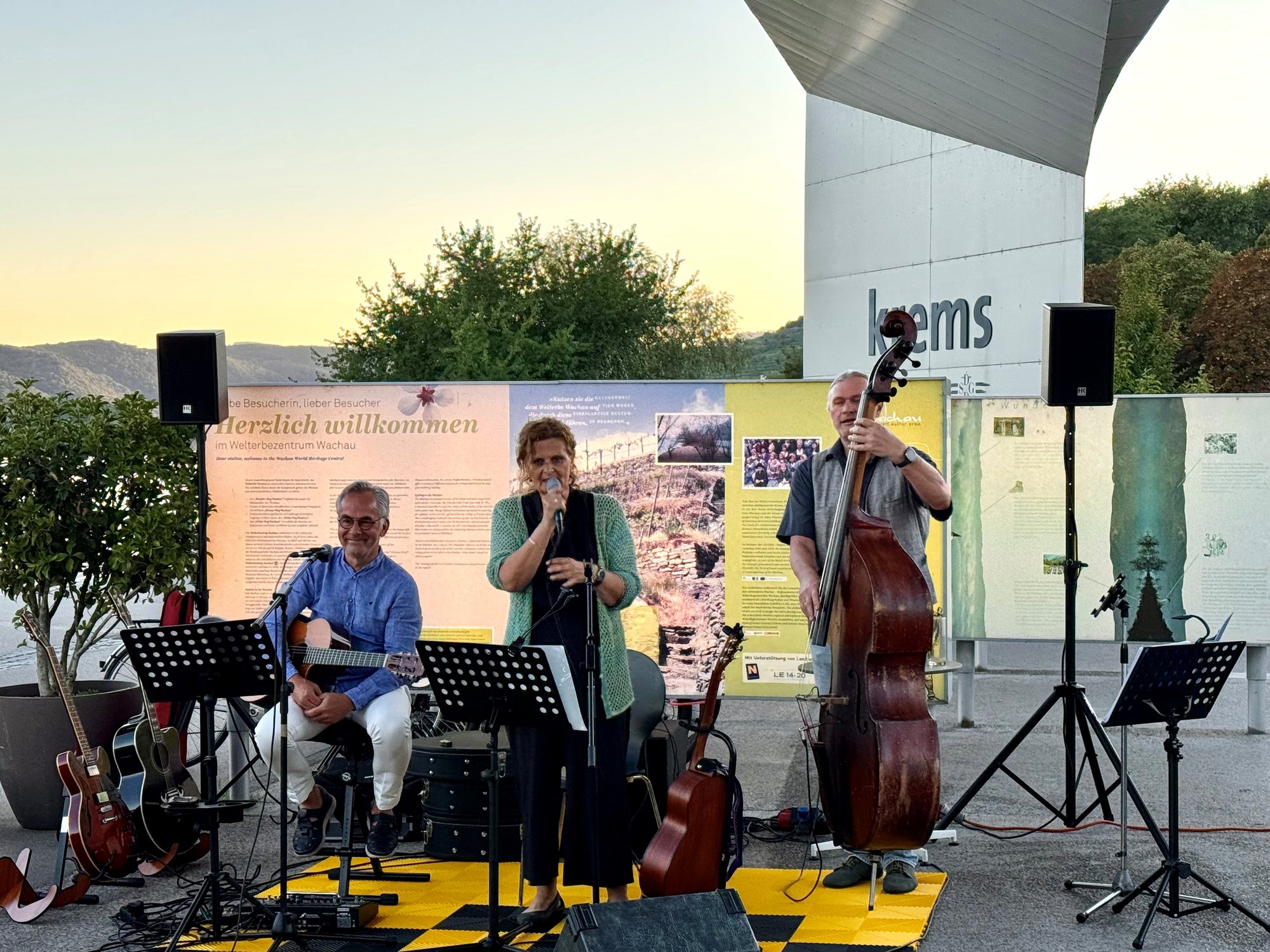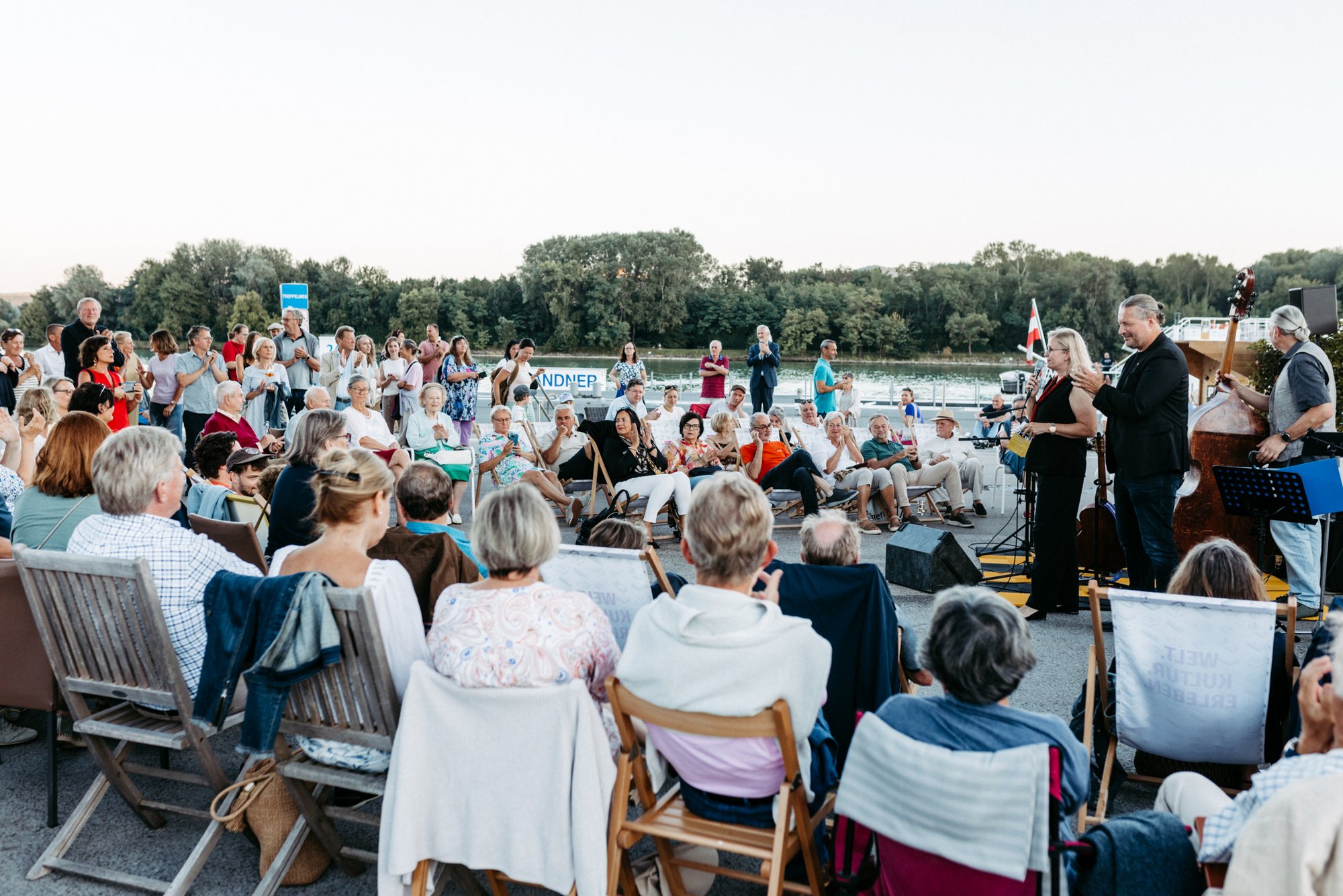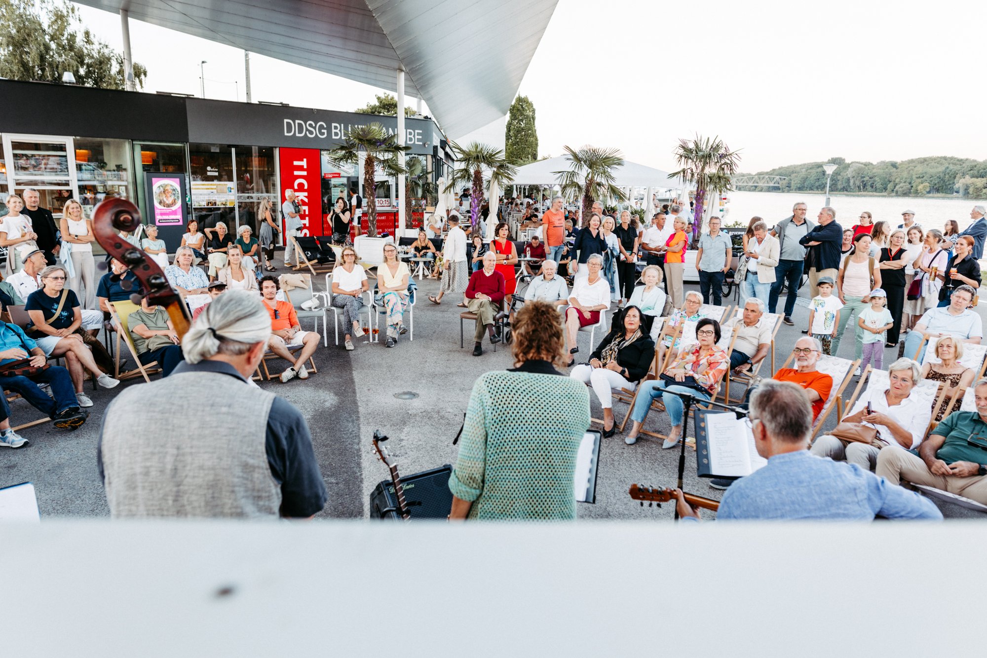 Unter dem Motto „Blue Danube Blues“ sorgten Martina Kucera (Vocals), Bernhard Schlichtinger (Gitarre, Vocals) und Konrad Zissler (Bass) für einen stimmungsvollen Abend, der zahlreiche Besucher:innen an die Donau lockte. Das Trio begeisterte mit einem vielseitigen Repertoire aus Blues, Country und gefühlvollen Balladen. Die Gäste genossen die Darbietungen und ließen den Sommerabend in entspannter Stimmung ausklingen.