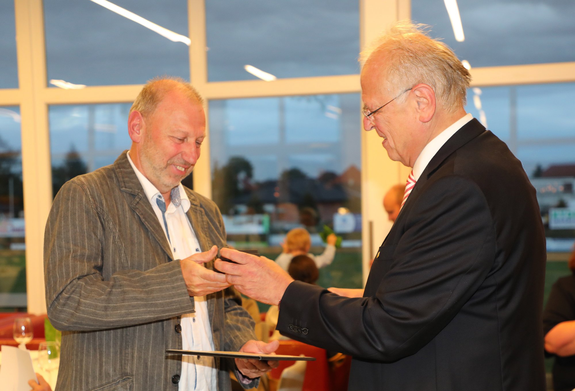 Foto: Chefinspektor i. R. Leopold Steiner, Chefinspektor Horst Todt und Bürgermeister Dr. Reinhard Resch bei der Ehrung