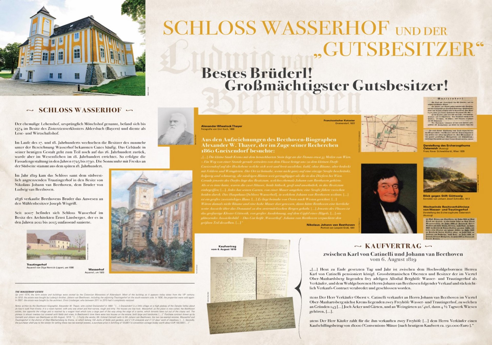 Als nachhaltige Ergänzung zur Veranstaltungsreihe BEETHOVEN 2020 @ KREMS präsentiert die Köchel Gesellschaft Krems nun eine frei zugängliche Dauerausstellung am Schloss Wasserhof in Gneixendorf.