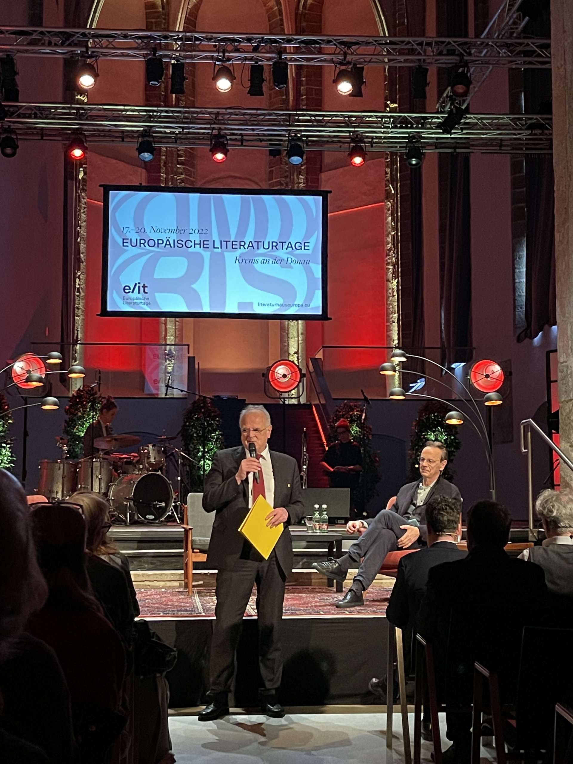 „Komik und Krise“ lautete das Leitthema, unter das der österreichische Schriftsteller und Kurator Walter Grond die 14. Europäischen Literaturtagen in Krems stellte. Ein dichtes viertägiges Programm lud zu Gesprächen, Diskussionen, Lesungen und Begegnungen mit namhaften europäischen Autoren und Autorinnen sowie Konzerten, Führungen und vielem mehr im Klangraum Krems Minoritenkirche, aber auch in der Gozzoburg und im Gasthof Walzer.
