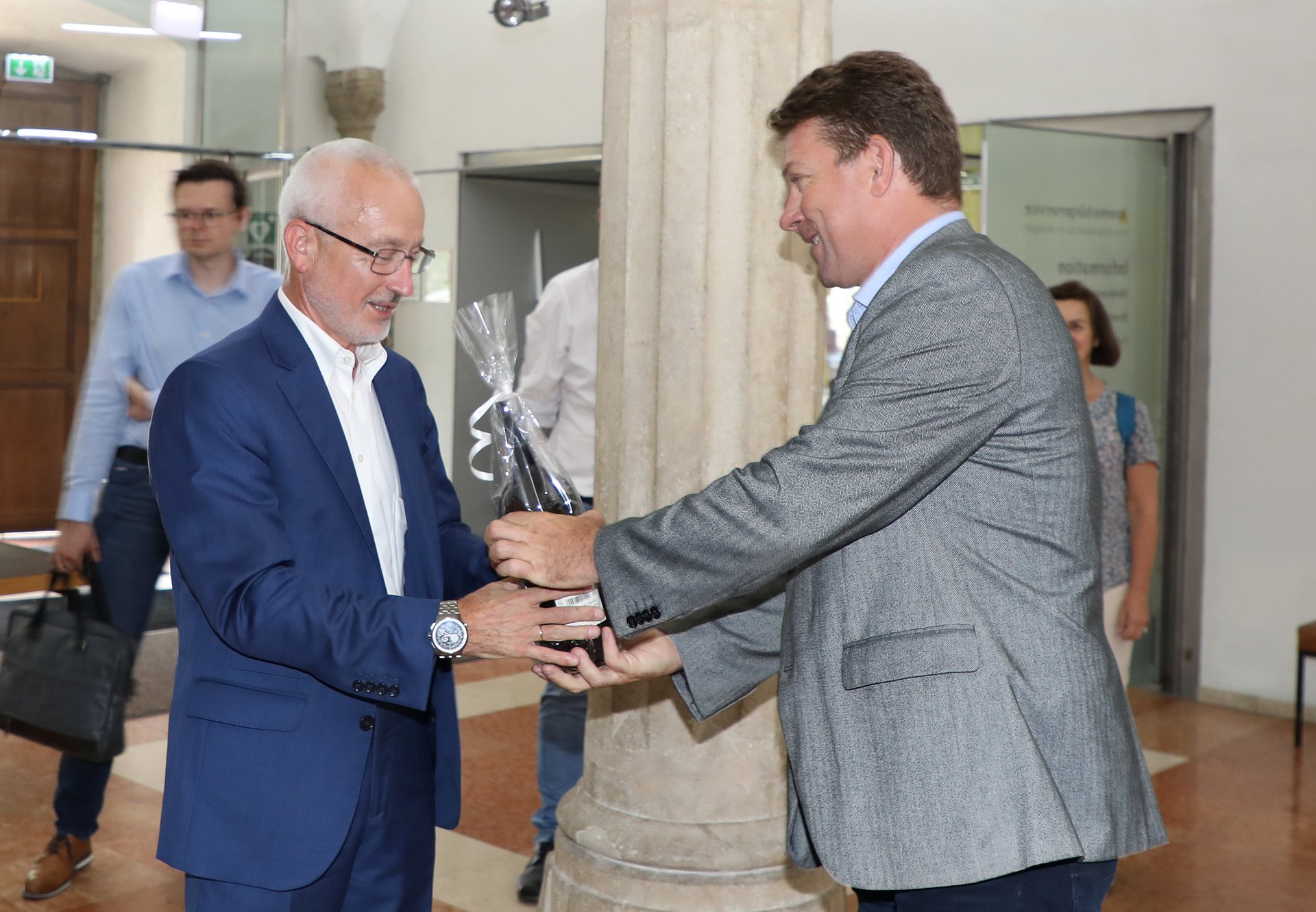 Foto 2: Dr. Erich Hechtner tritt ab 1. Juli den Ruhestand an, Magistratsdirektor Mag. Karl Hallbauer wünscht ihm alles Gute.