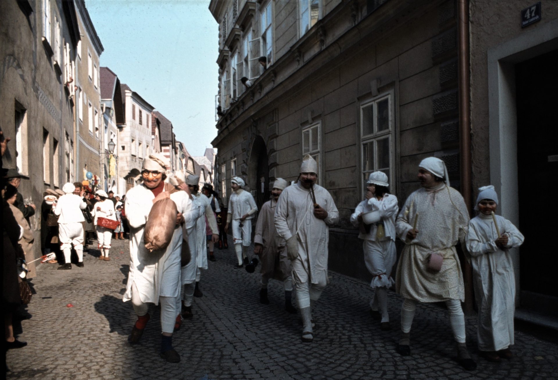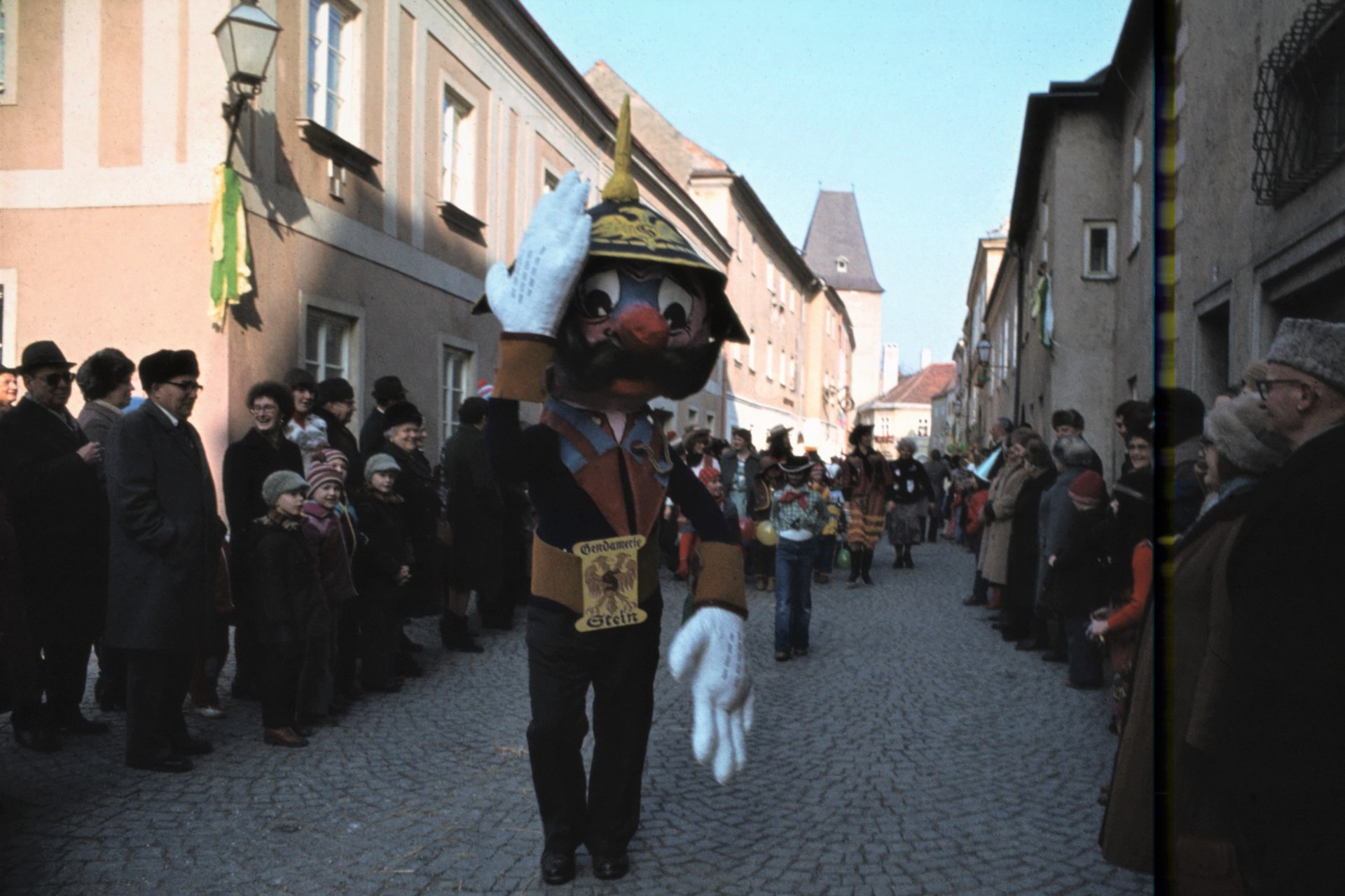 Friedi Emberger, Jahrzehnte lang das „Herz“ des Trachten- und Heimatvereins Wachau, brachte 1977 neuen Schwung in den Steiner Fasching. Seither hatte das lustige Treiben und Tanzen in der Steiner Altstadt für ausgelassene Stimmung gesorgt. Immer mehr Steiner Geschäftstreibende schlossen sich dem Umzug mit originellen Masken an. Erst gegen Mitternacht kehrte allmählich wieder Ruhe im sonst so ruhigen Stadtteil ein.... Anfang der 1980er Jahre übernahm Erwin Heider die Organisation des Umzugs, er war auch Gründer der Steiner Faschingsgilde.