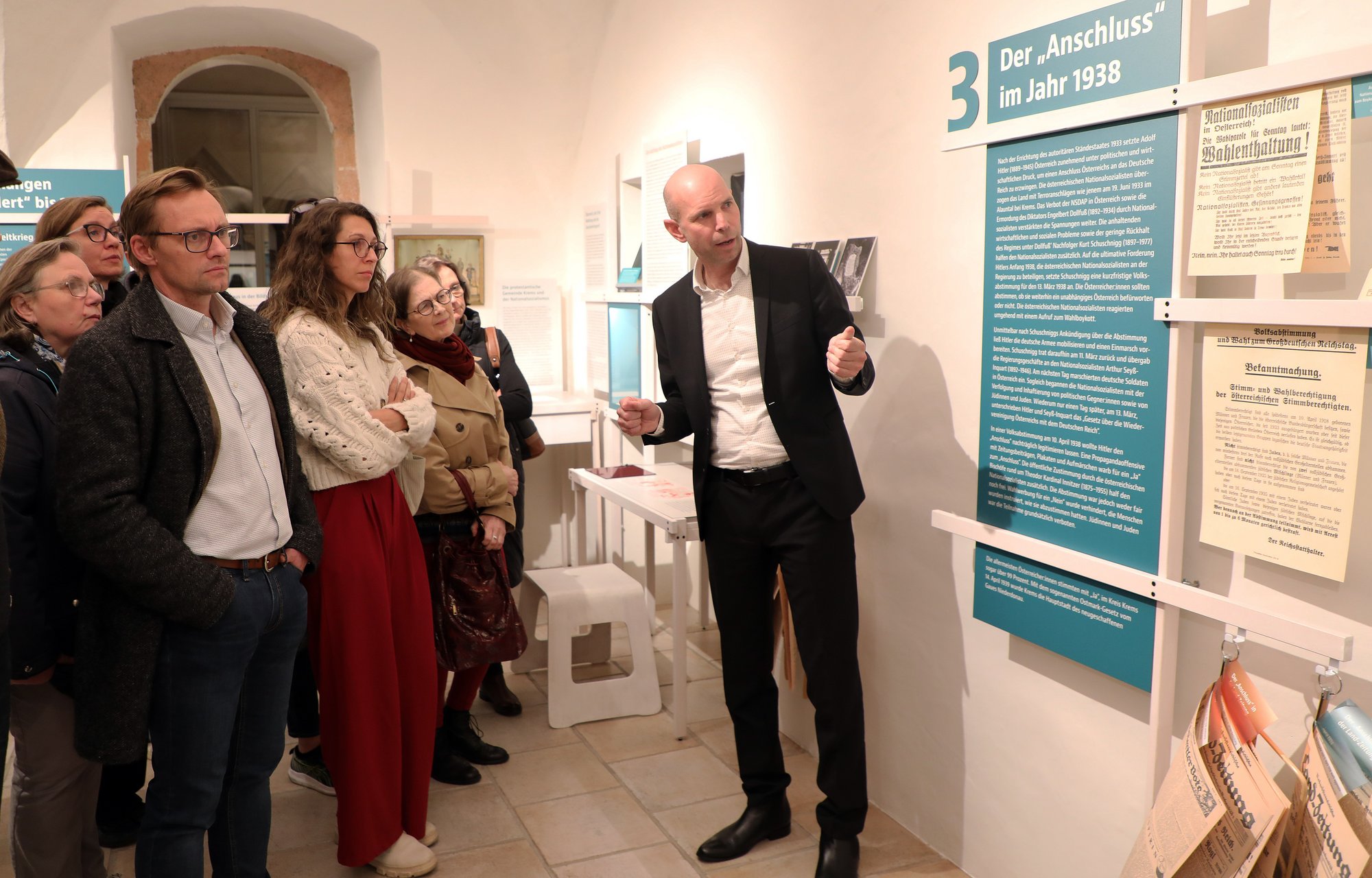 Kulturamtsleiter Gregor Kremser, der das Projekt gemeinsam mit dem wissenschaftlichen Leiter Dirk Schuster konzipiert hat, erklärte den Grundgedanken hinter der Werkstatt: „Wir wollten ein Format schaffen, das zeigt, dass Geschichte nie fertig erzählt ist. Gerade die Zeitgeschichte – von der späten Monarchie bis in die Nachkriegszeit – ist voller Brüche, Wendepunkte und offener Fragen. Diese Werkstatt soll Raum geben für neue Forschung, für kritische Auseinandersetzung und für Diskussion. Und sie bietet die Möglichkeit, Geschichte anhand konkreter Orte, Schicksale und Objekte unmittelbar erlebbar zu machen.“ Besonders wichtig war Kremser der Bildungsaspekt: Die Werkstatt solle jungen Menschen ermöglichen, Geschichte als Erfahrungsraum zu begreifen. „Wir wollen zeigen, wie aus einer Demokratie eine Diktatur werden kann – und umgekehrt, wie demokratische Werte neu entstehen und verteidigt werden müssen.“ Das Ausstellungskonzept folgt einer klaren Struktur. Es wird dabei nicht bewertet, sondern dokumentiert – die Besucher:innen sollen sich selbst ein Bild machen und eigene Schlüsse ziehen.