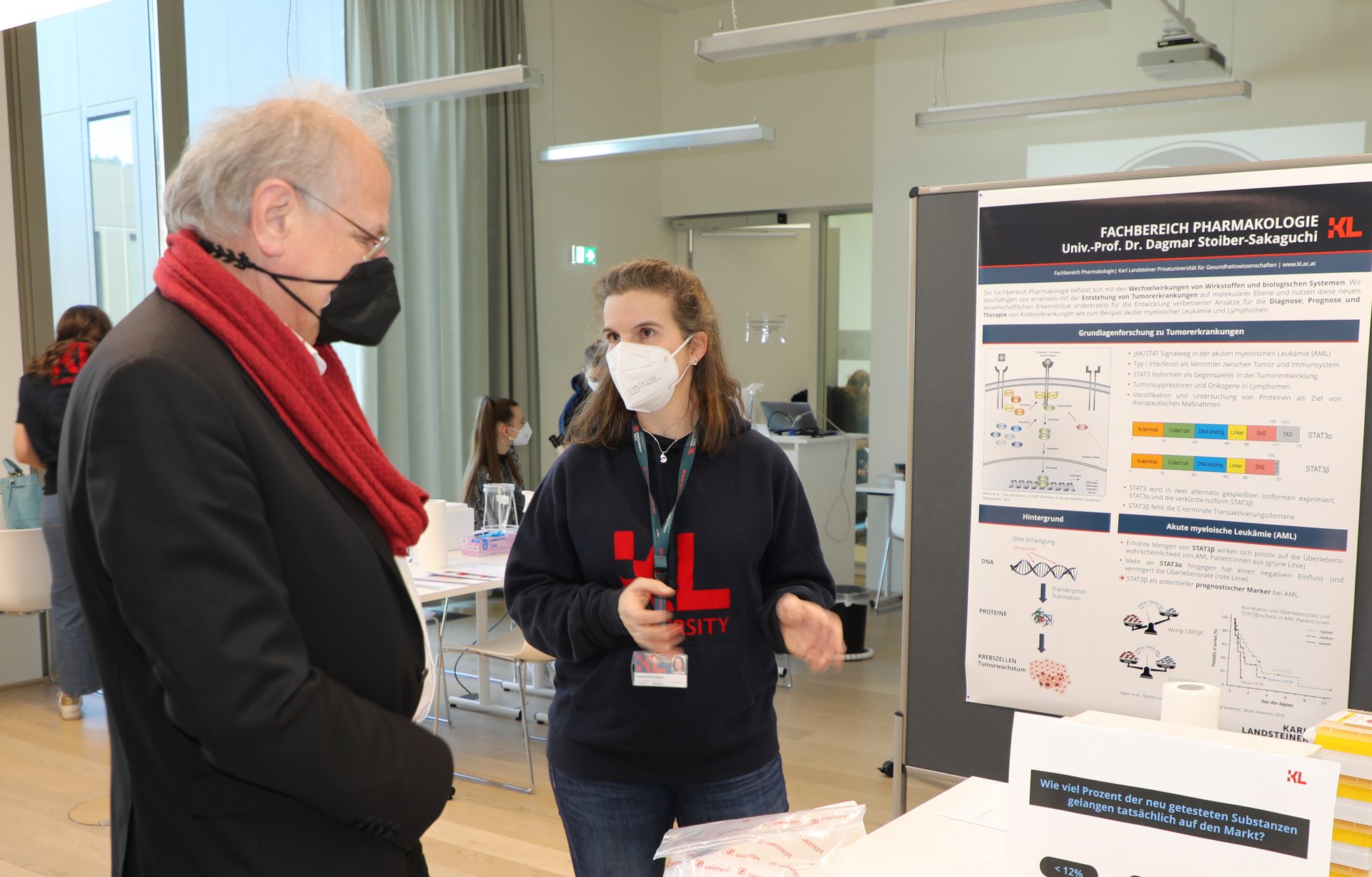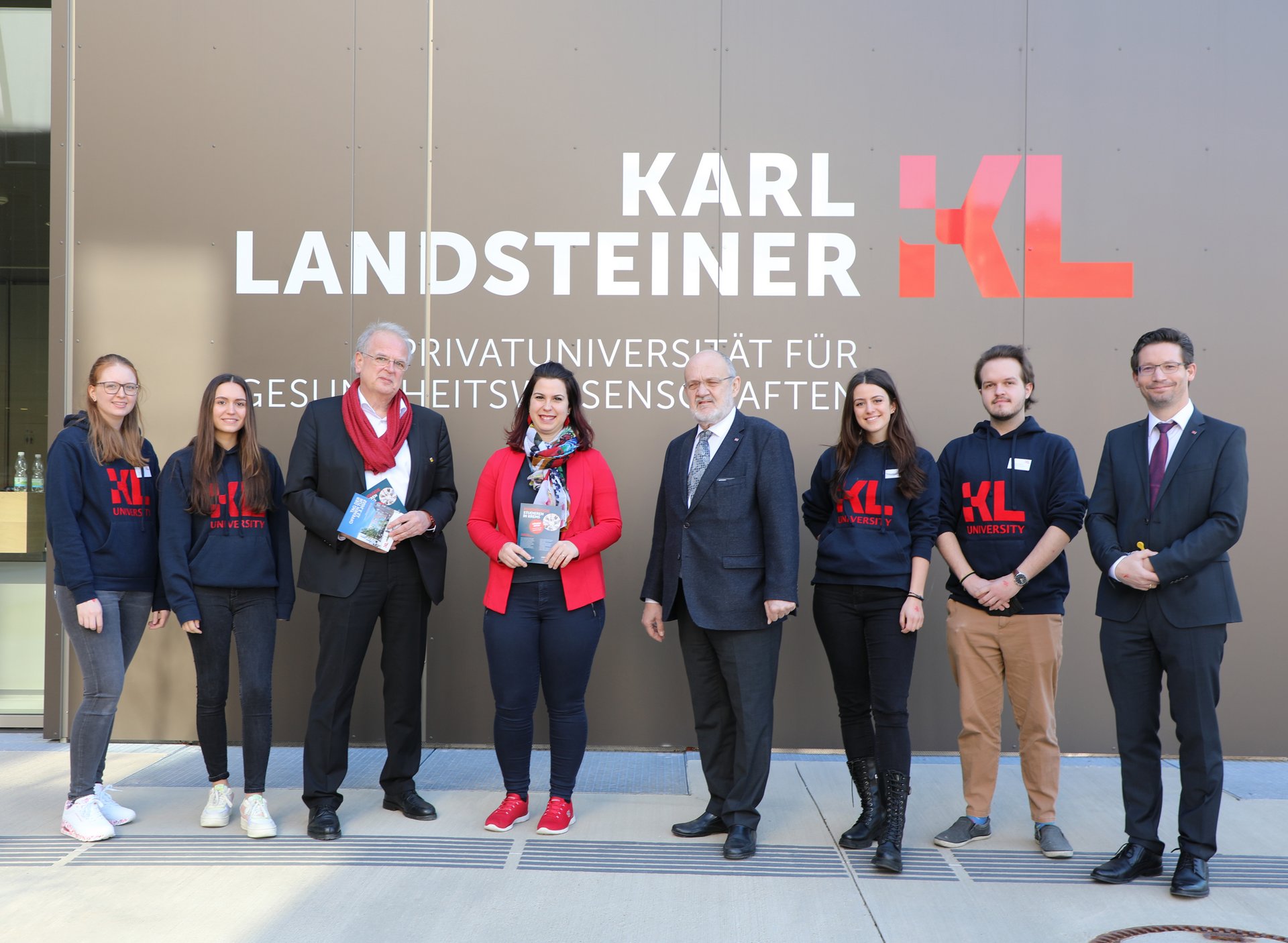 „Die Karl Landsteiner Privatuniversität für Gesundheitswissenschaften (KL) ist einer der Bausteine, die Krems zur zukunftsfähigsten Stadt Österreichs machen", sagt Bürgermeister Dr. Reinhard Resch beim Besuch der Tag der offenen Tür zum Hausherren Rektor Univ.-Prof. Dr. Rudolf Mallinger, „besonders höchstes Ausbildungsniveau in Verbindung mit optimaler Praxisnähe bringt so viele Studentinnen und Studenten nach Krems, die die Stadt und ihre Vorzüge lieben lernen.“