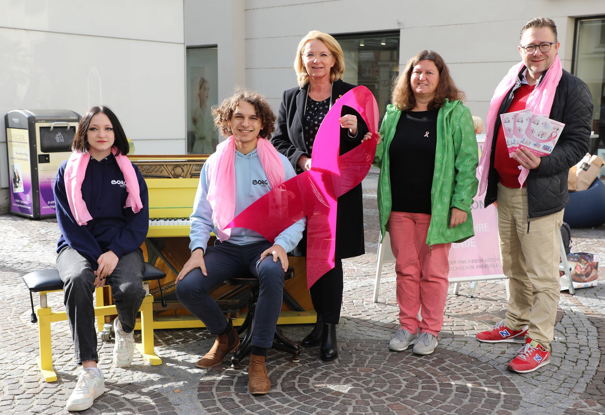 Ganz im Zeichen der Krebshilfe stand auch die Spendenaktion am Samstag, 16. Oktober gemeinsam mit dem Stadtmarketing Krems bei einem Klavierkonzert von Horst Berger, Jonas Langhammer und Flora Sacher (beide BORG Krems) am Täglichen Markt statt. Spendenboxen sind im Kremser Rathaus, in der Badearena, in der Stadtbücherei & Mediathek, im museumkrems und im Info-Center von kremstourismus aufgestellt. Als Dankeschön für eine Spende gibt es Infobroschüren, rosa Schleifen und CDs „Reise an den Ort der Ruhe und Achtsamkeit“.