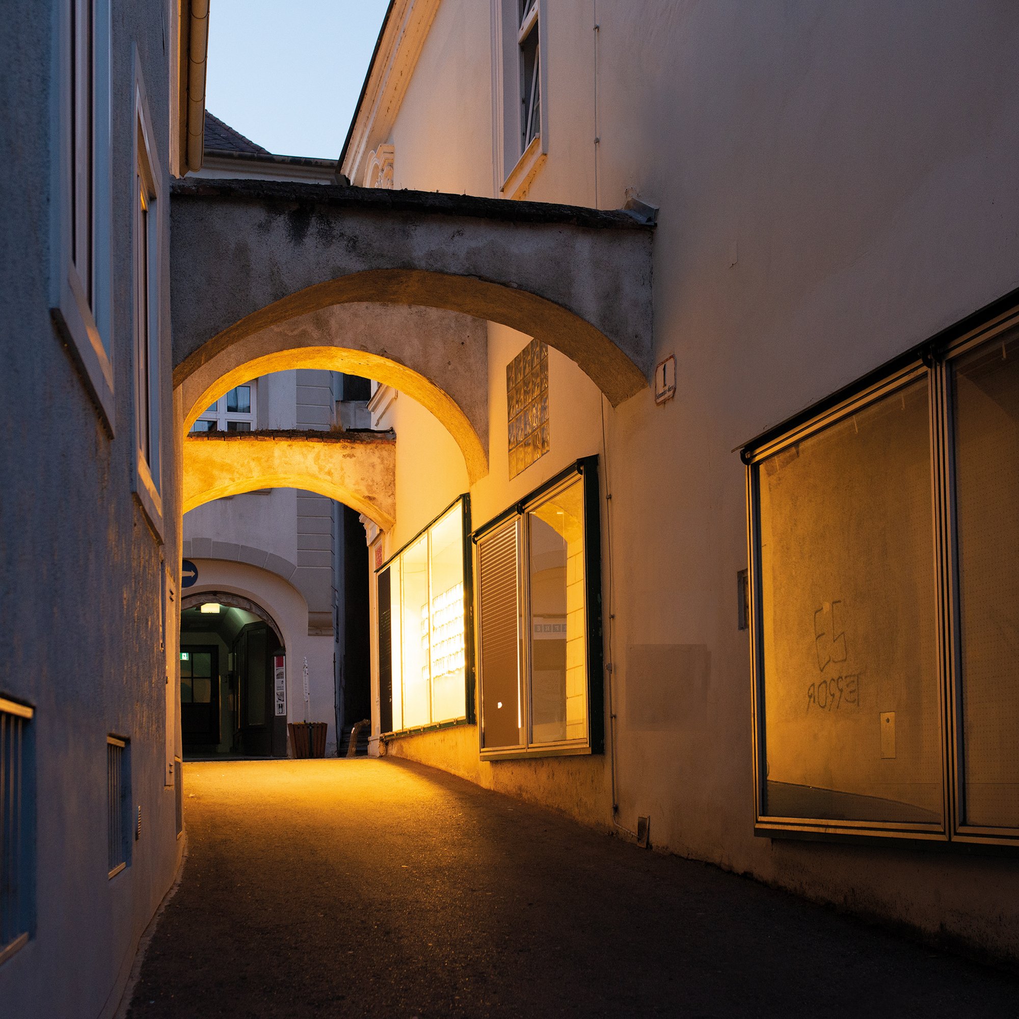 Foto: Von 4. Bis 14. November bringt das LICHTFEST Krems ausgewählte Punkte in der Innenstadt (wie die Schumachergasse) zum Leuchten. © studio[sic]