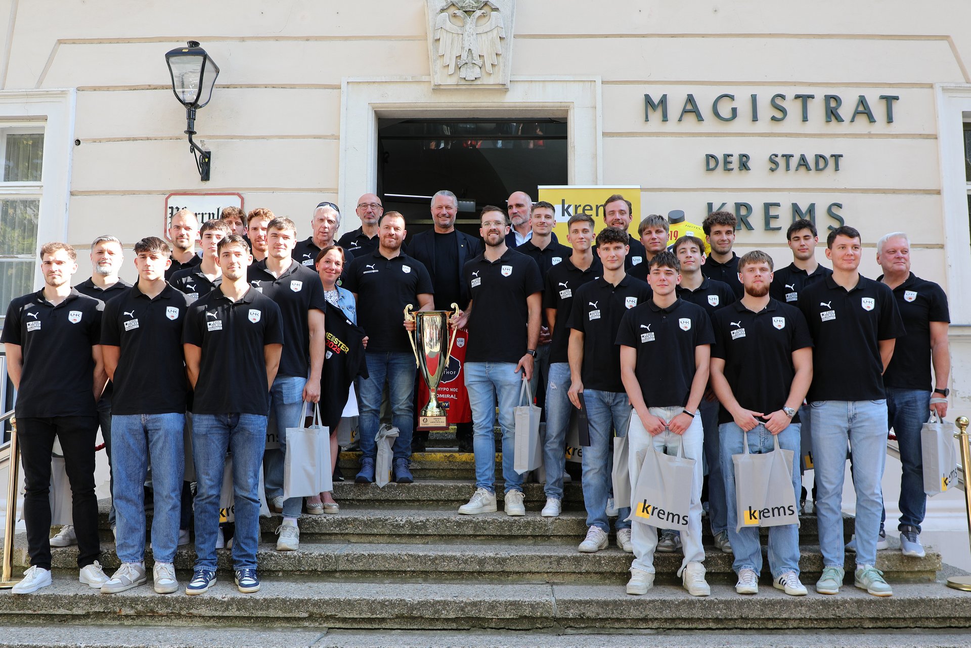 Geschäftsführer Thomas Aschauer dankte im Namen des Vereins für die Wertschätzung durch die Stadt und die großartige Unterstützung durch die Fans: „Dieser Titel ist der Lohn harter Arbeit und gelebten Teamgeists. Wir danken der Stadt Krems für diesen würdigen Empfang – und wir blicken schon jetzt mit viel Motivation auf die kommende Saison.“