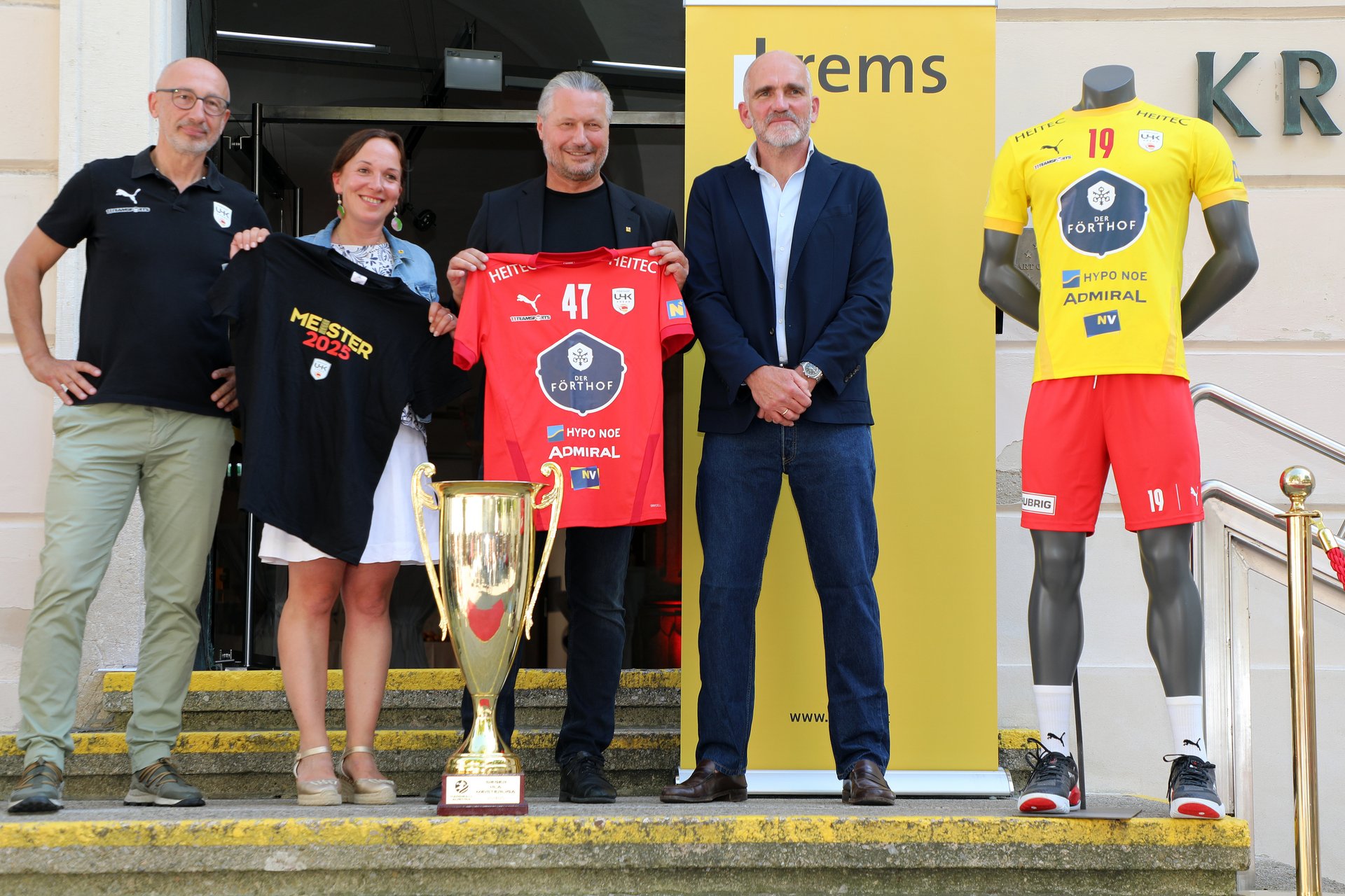 Spieler, Trainer, Betreuer und der medizinische Stab wurden vor dem Rathaus geehrt. Anschließend lud die Stadtspitze zu einem Empfang ins Rathaus, bei dem nicht nur die sportlichen Erfolge im Mittelpunkt standen, sondern auch die enge Verbundenheit zwischen Stadt und Verein. „Das Team des Förthof UHK Krems ist ein Aushängeschild für den Kremser Sport und hebt das Image der Stadt Krems weit über die Grenzen hinaus. Besonders die ausgezeichnete Jugendarbeit mit Eigenbauspielern in der Meistermannschaft zeichnet den Handballsport in Krems aus. Ich bin stolz, heute im Namen aller Kremserinnen und Kremser Danke sagen zu dürfen“, sagte Bürgermeister Peter Molnar bei der Ehrung.