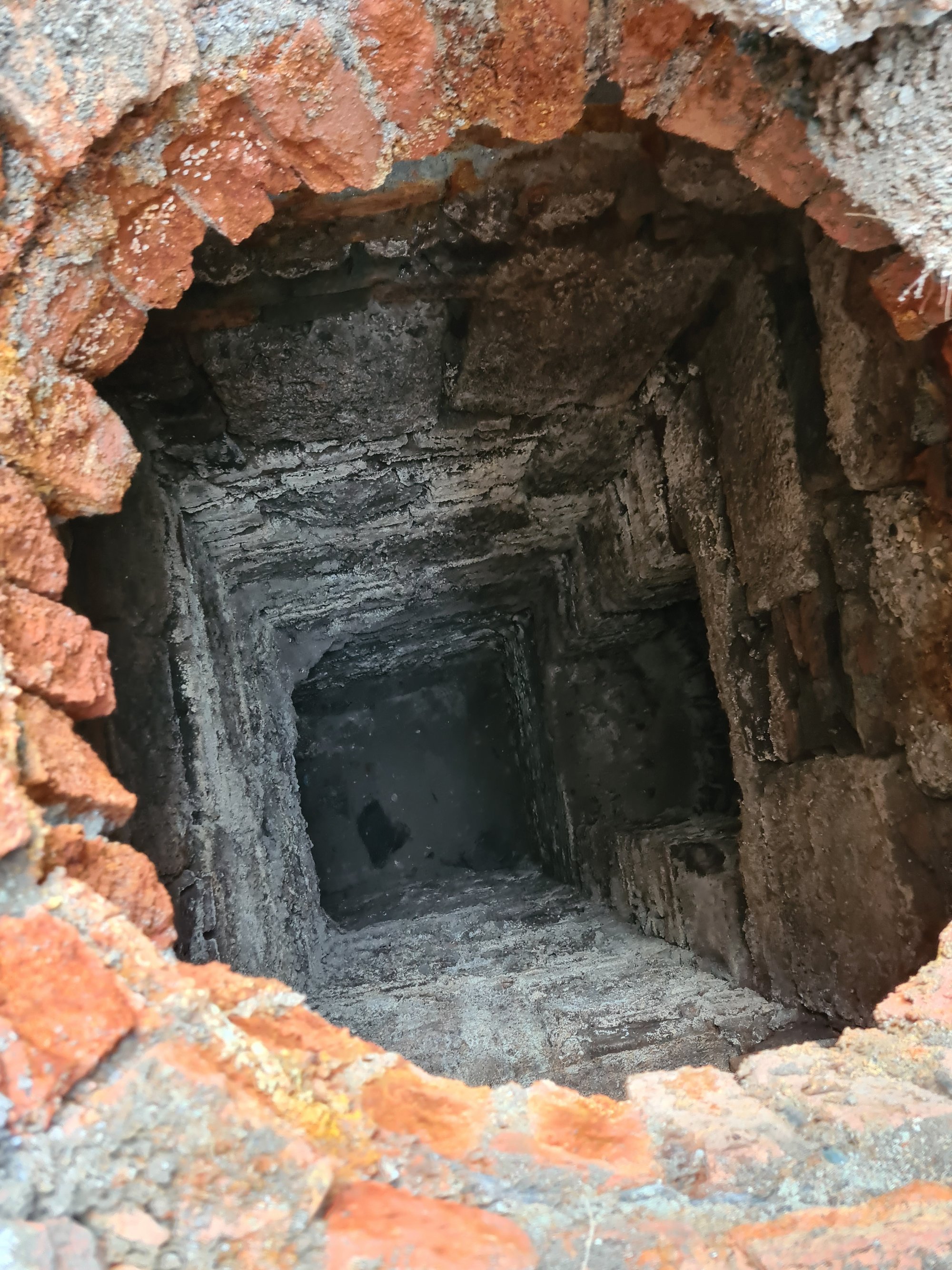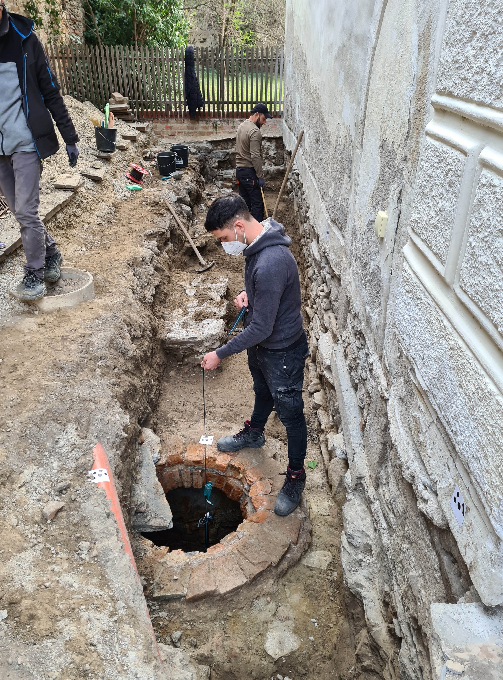 Wahrscheinlich handelte es sich um einen Versorgungsschacht, der vom Keller zugänglich war. Er ist mit einem Ziegelgewölbe und Steinplatten verschlossen und besteht besteht im unteren Teil aus einem mit Kalksteinquadern aufgebauten Netzmauerwerk.