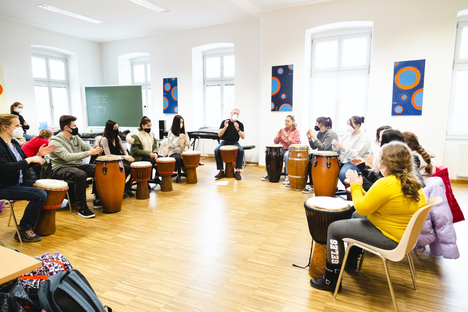 Der Percussion-Workshop mit MittelschülerInnen an der Musikschule Krems ist Teil dieses Projekts. Hubert Pöll leitet die Gruppe höchstpersönlich. „Es fasziniert mich immer wieder, wie rasch junge Menschen über Gehör und Gedächtnis einfache Rhythmuspatterns erfassen und zu improvisieren versuchen“, erzählt er. Am wichtigsten ist es ihm, „Musik für alle SchülerInnen erlebbar zu machen, individuelle Lernerfahrungen zu ermöglichen.“ Qualität und Leistung spielen dabei eine ebenso wichtige Rolle wie respektvoller Umgang miteinander, gegenseitige Wertschätzung und Persönlichkeitsbildung.
