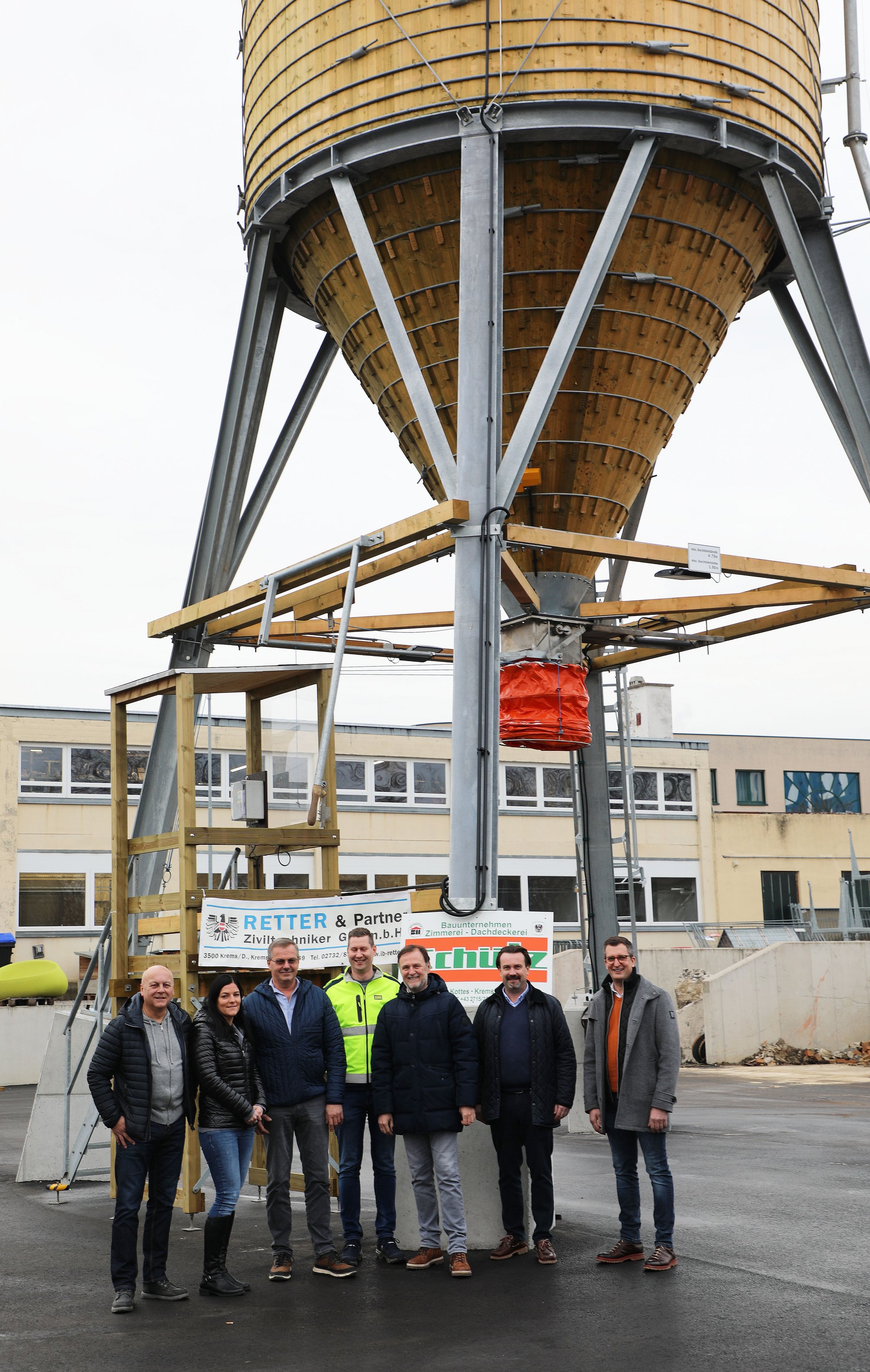 - Neuer Salzsilo: An der Planung und Umsetzung beteiligt waren Bereichsleiter Roland Dewisch, Baumeisterin DI Alice Schütz, Helmut Raffetseder (Firma Schütz), Andreas Hirtl (Firma Porr), Stadtrat Werner Stöberl, Stephan Kail (Retter & Partner) und Wirtschaftshofleiter.Jürgen Stundner