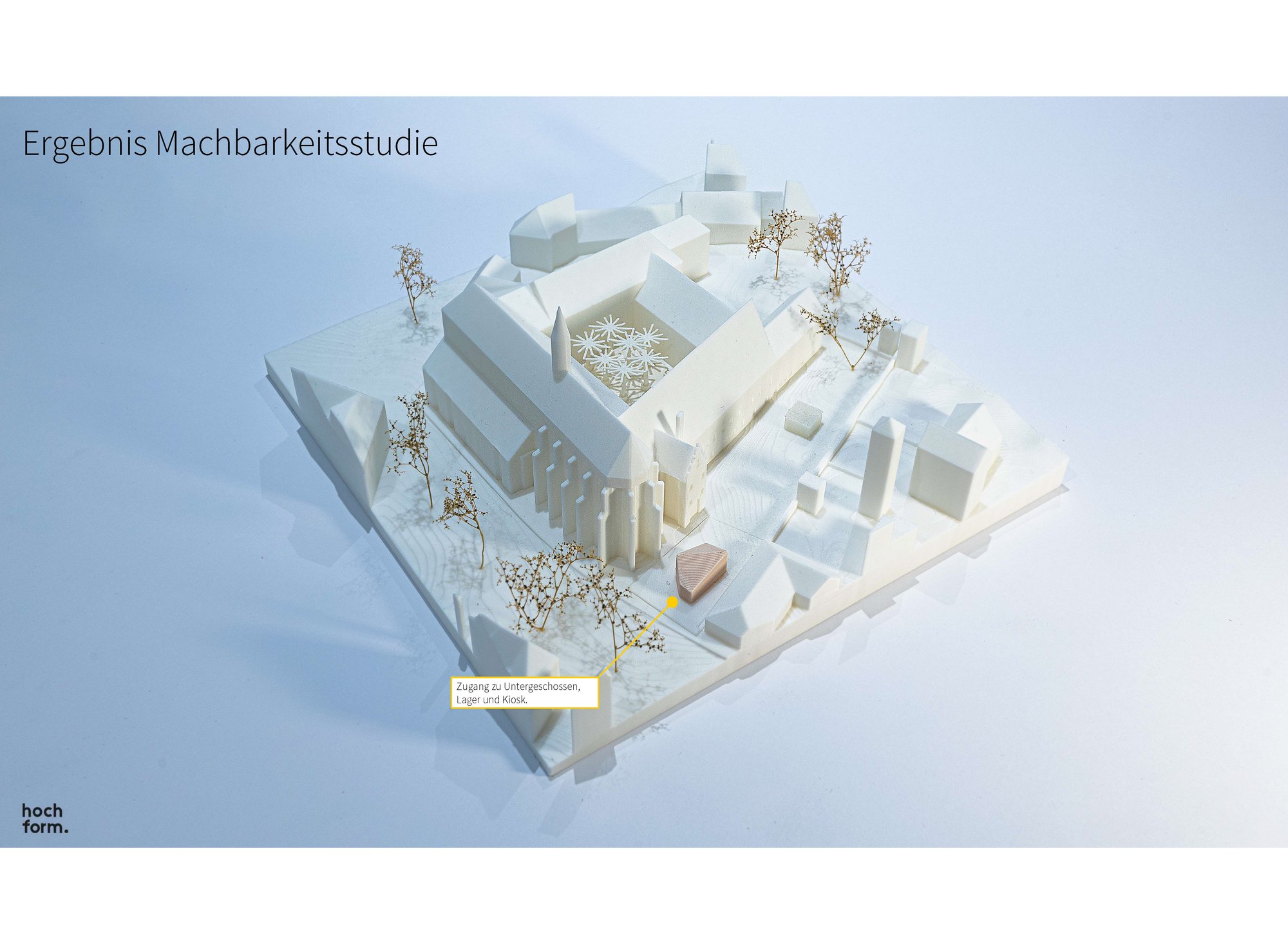Besucher:innen sollten den Gebäudekomplex künftig laut diesem Konzept bei gewissen Veranstaltungen nicht mehr über den bisherigen Haupteingang beim Kirchenschiff, sondern über einen Eingang auf der Ostseite (in der Nähe des Schlüsselamts) betreten. In diesem Bereich soll ein Untergeschoss geschaffen werden, das mit Lift, WC-Anlagen und Lagerräumen ausgestattet ist.