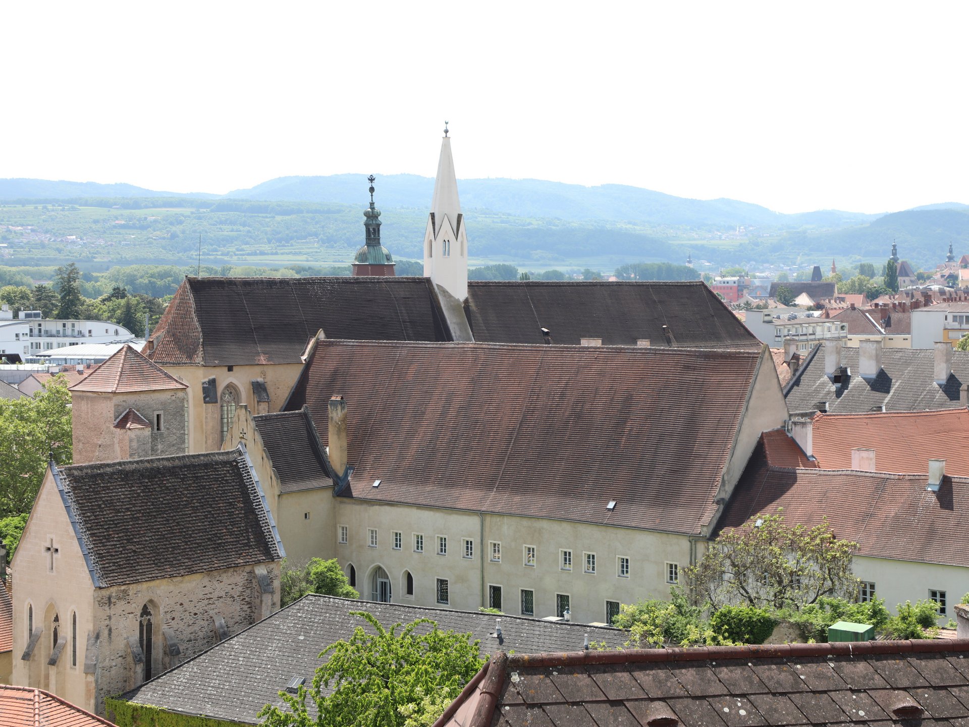 Direkt vor der Präsentation der Machbarkeitsstudie führte Kunsthistoriker und Denkmalforscher Günther Buchinger die Mitglieder des Gemeinderats durch die Dominikanerkirche und das angrenzende Kloster. Der ab 1240 errichtete frühgotische Kirchenraum zählt zu den bedeutendsten Sakralbauten Niederösterreichs. Er wurde bereits 1786 säkularisiert und später als Stadttheater, Kino und sogar als Feuerwehrdepot genutzt. In den vergangenen 66 Jahren wurde der Gebäudekomplex immer wieder behutsam adaptiert und renoviert.