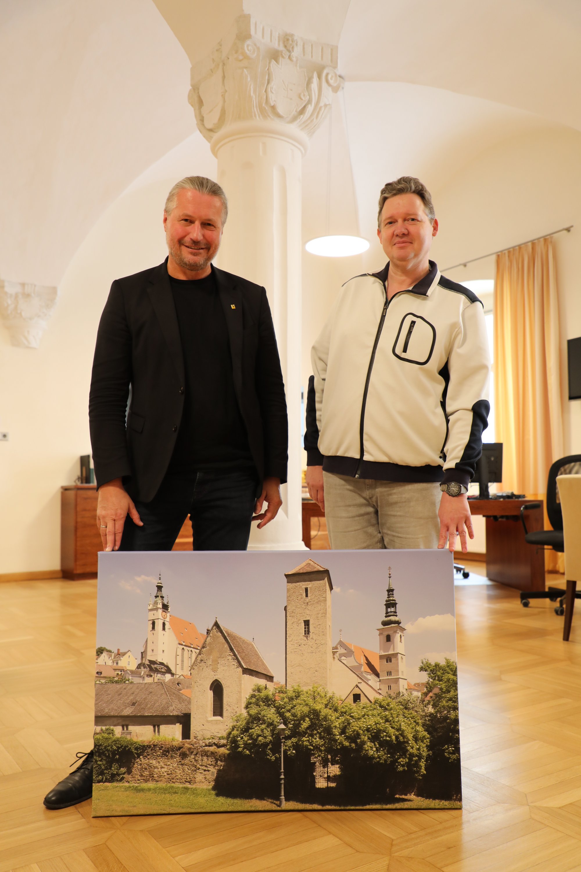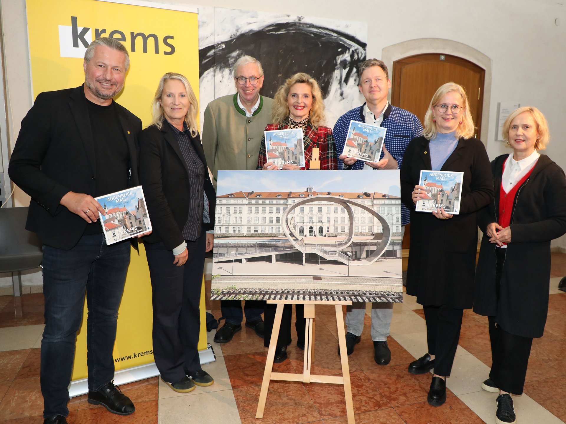 „Krems ist eine Stadt der Superlative. Ich bin stolz und glücklich, hier leben zu dürfen,“ brachte Helma Strizik bei der Buchpräsentation im Rathausfoyer ihre Begeisterung zum Ausdruck. „Unser Buch soll zu einem Spaziergang durch Krems einladen“, ergänzte Fotograf Franz Karl. Bürgermeister Peter Molnar zeigte sich von dem neuen Bildband begeistert: „Sie haben uns mit diesem Buch wirklich ein großes Geschenk gemacht.“ Die Stadt Krems wird den Bildband künftig an Gäste und Jubilare verschenken.
