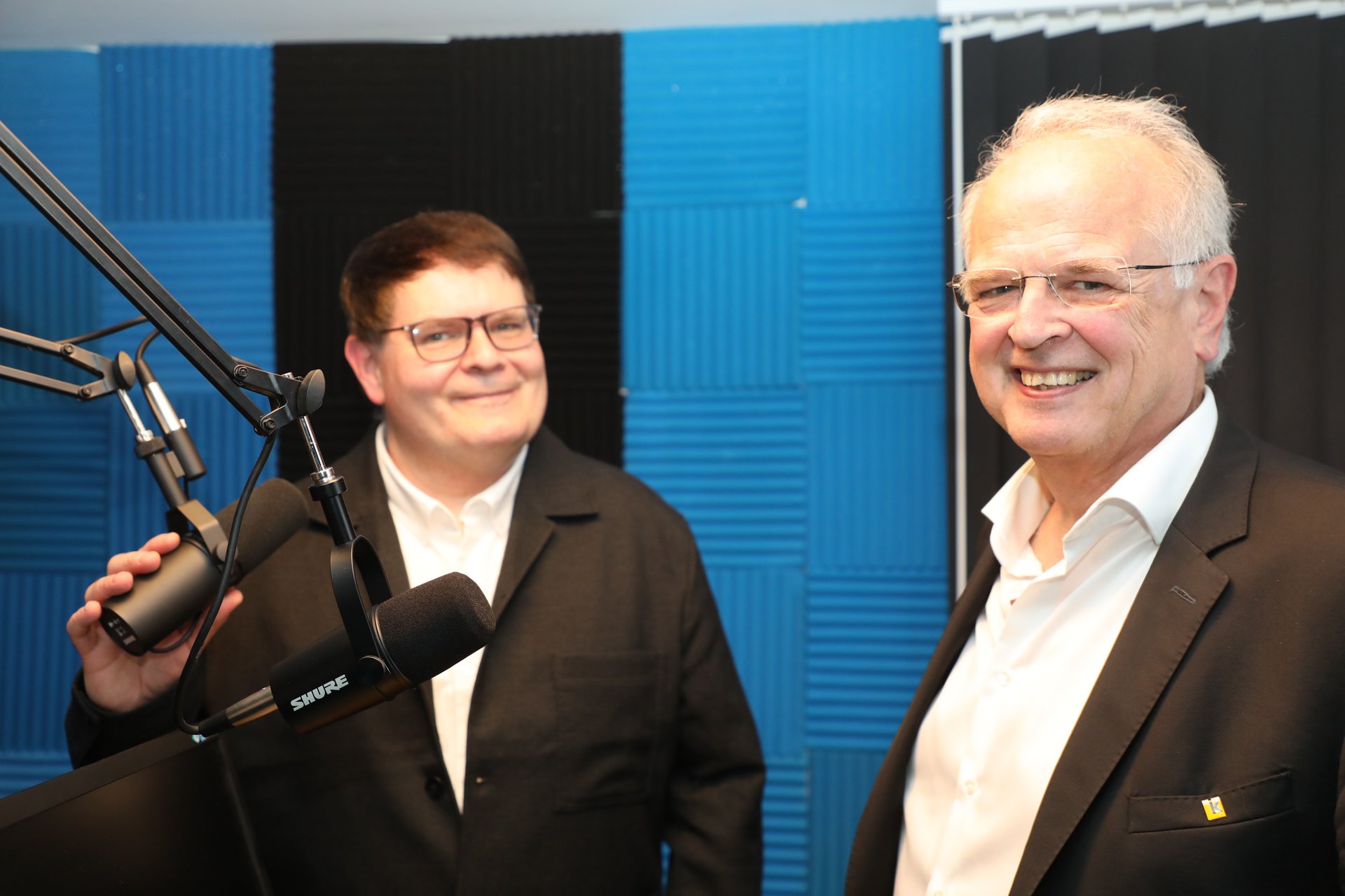 Foto: Moderator Holger Ubl und Bürgermeister Dr. Reinhard Resch beim Interview