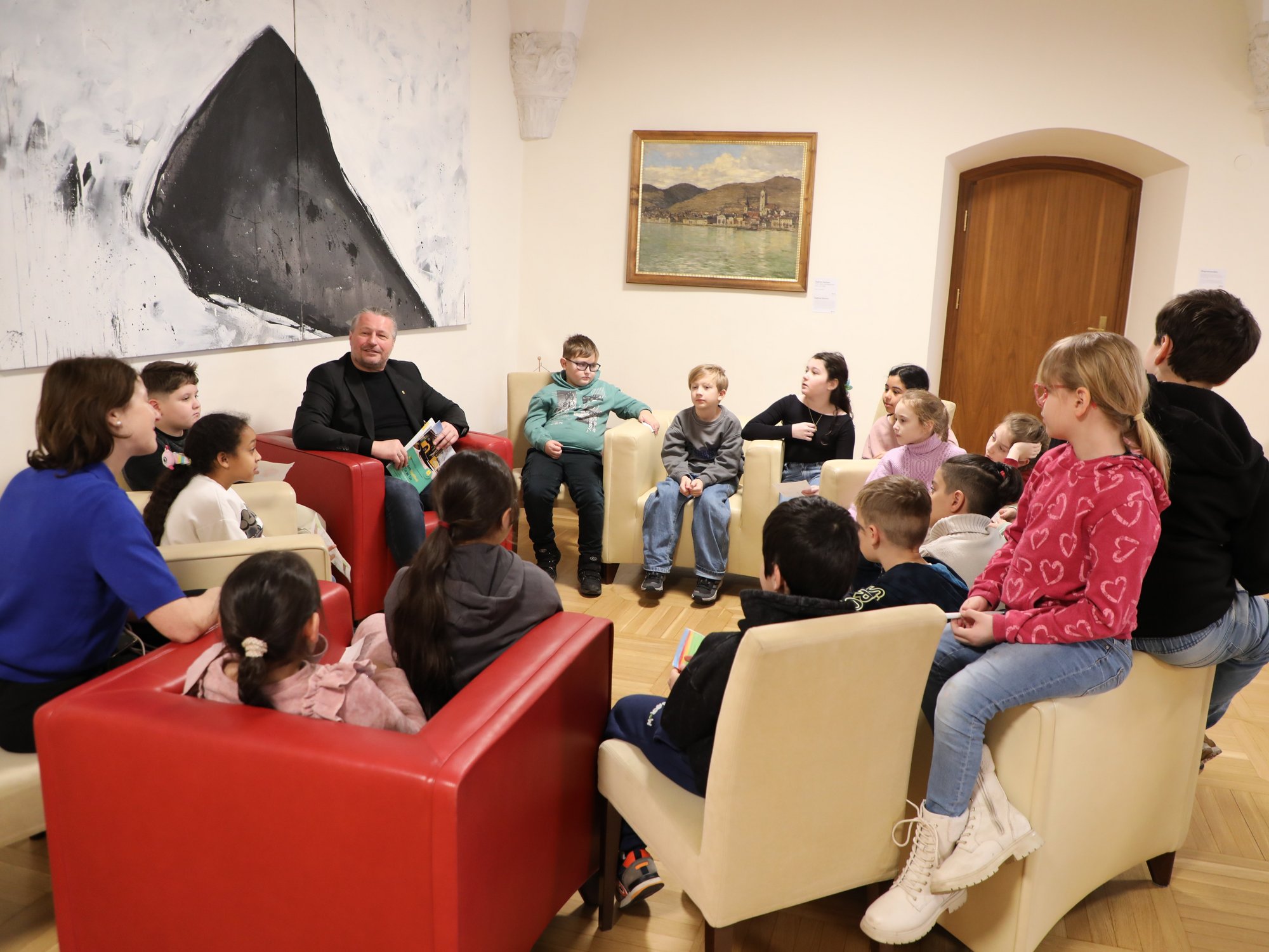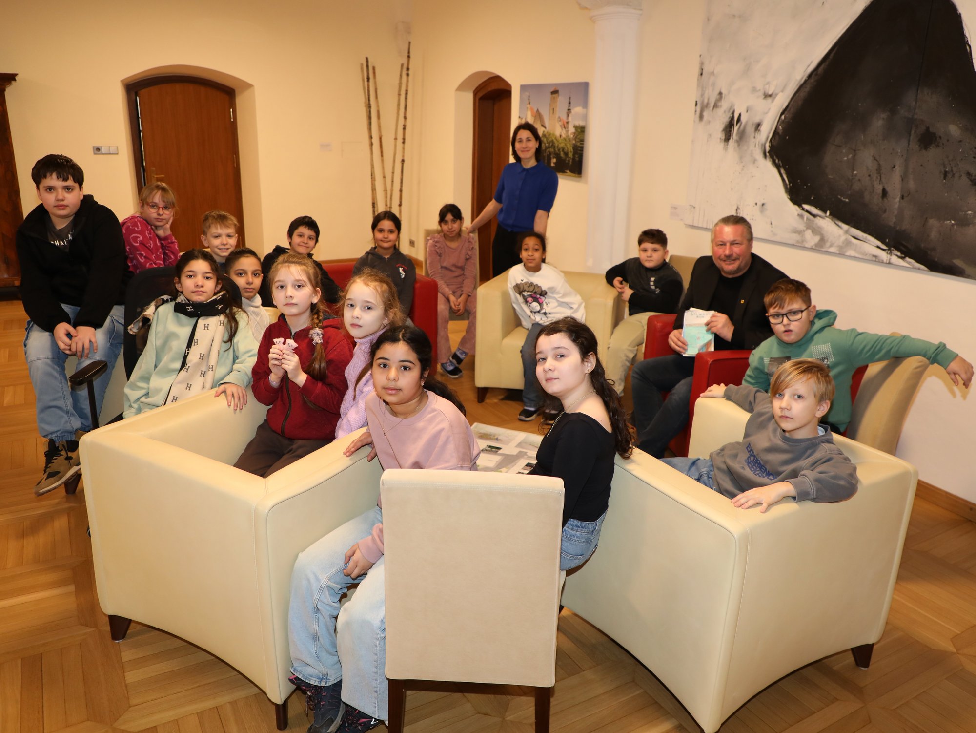Der Stadtchef stellte den Kindern nicht nur die Kunstwerke in seinem Büro vor, sondern erzählte ihnen auch Persönliches aus seiner eigenen Schulzeit. So verriet Peter Molnar, dass Sport sein Lieblingsfach war und er in seiner Jugend niederösterreichischer Landesmeister im Dreikampf sowie Vizelandesmeister im 50-Meter-Kraul mit dem Schulteam war. Die Kinder nutzten die Gelegenheit, dem Bürgermeister viele Fragen zu stellen. Besonders groß war ihr Interesse am neuen Kremser Hallenbad, das voraussichtlich am 1. Juli eröffnet wird.