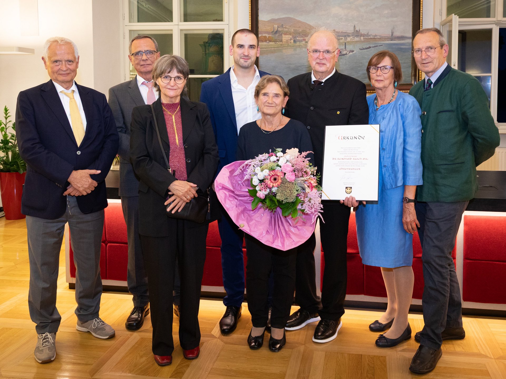 Mit ihrer Laudatio zeichnete Vizebürgermeisterin und Wegbegleiterin Eva Hollerer ein beeindruckendes und sehr persönliches Bild von Reschs Lebenswerk als Arzt, Unternehmer und Politiker. Besonnenheit, Dialogbereitschaft und sein konsensorientierter Führungsstil zeichneten ihn aus. In all seinen Funktionen habe Reinhard Resch stets Visionen und Ziele gehabt und dabei immer die Menschen in den Mittelpunkt gestellt, so die Laudatorin. Hollerer hob Reschs Bescheidenheit und sein soziales Engagement hervor: „Du hast so oft still und ohne Aufsehen geholfen; ohne Presse, ohne Tamtam und manchmal auch ganz ohne ein Danke.“