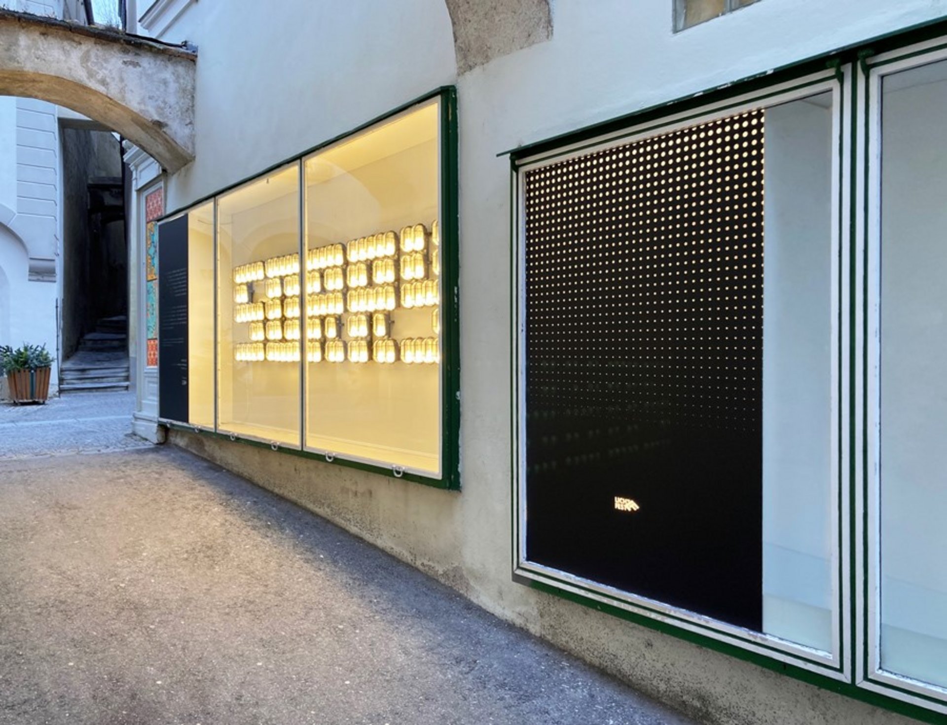 Die Arbeit SORRY von Lukas Troberg kann daher als Einstimmung auf das Lichtkunstprojekt betrachtet werden. Gleichzeitig kommt jenes Gefühl des Bedauerns zum Ausdruck, das heuer viele Menschen immer wieder heimgesucht hat: SORRY, dass wir uns nicht persönlich treffen konnten …. Der Schriftzug taucht als Zeichnung oder als Wort im Stadtbild auf und verschwindet. Noch bis 1. März in einer Geschäftsauslage an der Ecke Untere Landstraße / Schumachergasse zu sehen.