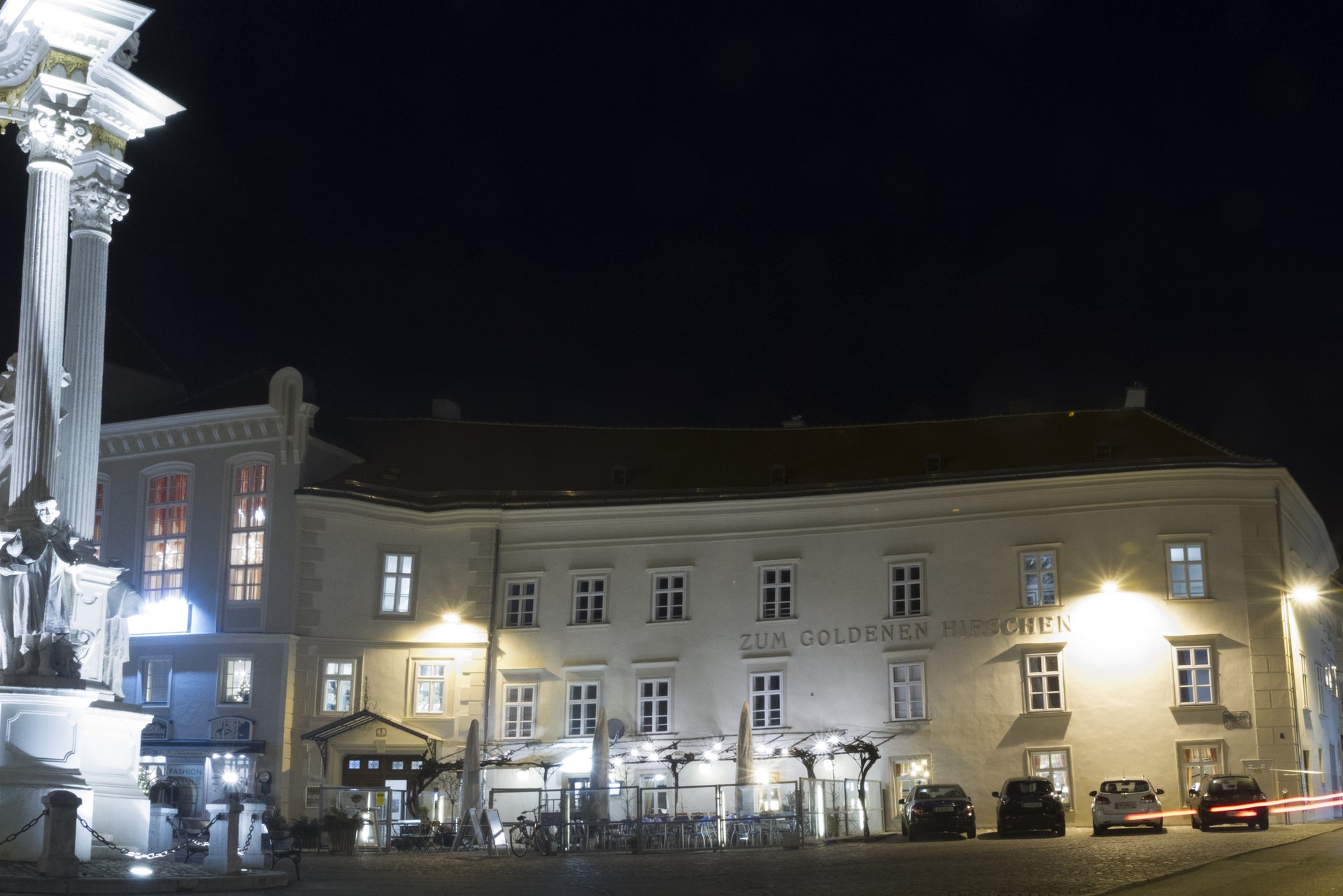 Gasthof „Zum Goldenen Hirschen“, Dreifaltigkeitsplatz (2017): 1556 erstmals erwähnt, das Haus dürfte jedoch wesentlich älter sein. Belegt sind zwei Türme mit Stuben aus dem 16. Jahrhundert. Aus dieser Zeit stammen auch die Steinkonsolen, die heute noch vorhanden sind.