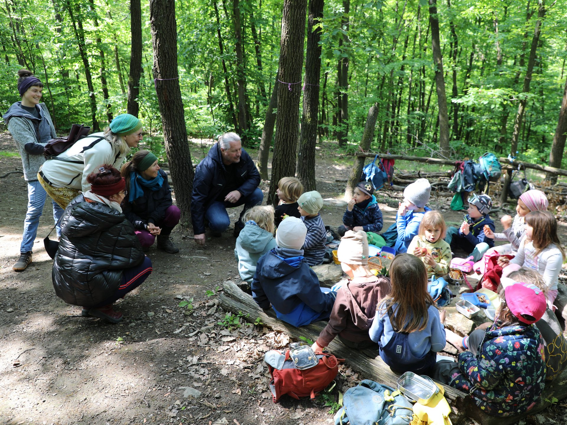 Die Kinder verbringen ihre Vormittage bei Waldfexxx komplett inmitten der Natur. Bei Schlechtwetter finden sie in einem kleinen Tipi Unterschlupf, im Falle eines Unwetters steht ein nahegelegener Erdkeller zur Verfügung. Es gibt kein herkömmliches Spielzeug – gearbeitet und gespielt wird mit Naturmaterialien. Oder die Kleinen beobachten einfach die Natur. Begeistert berichteten die Kinder dem Stadtchef von ihren Begegnungen mit diversen Wildtieren – gemeinsam wurde schließlich ein großer Hirschkäfer bestaunt.