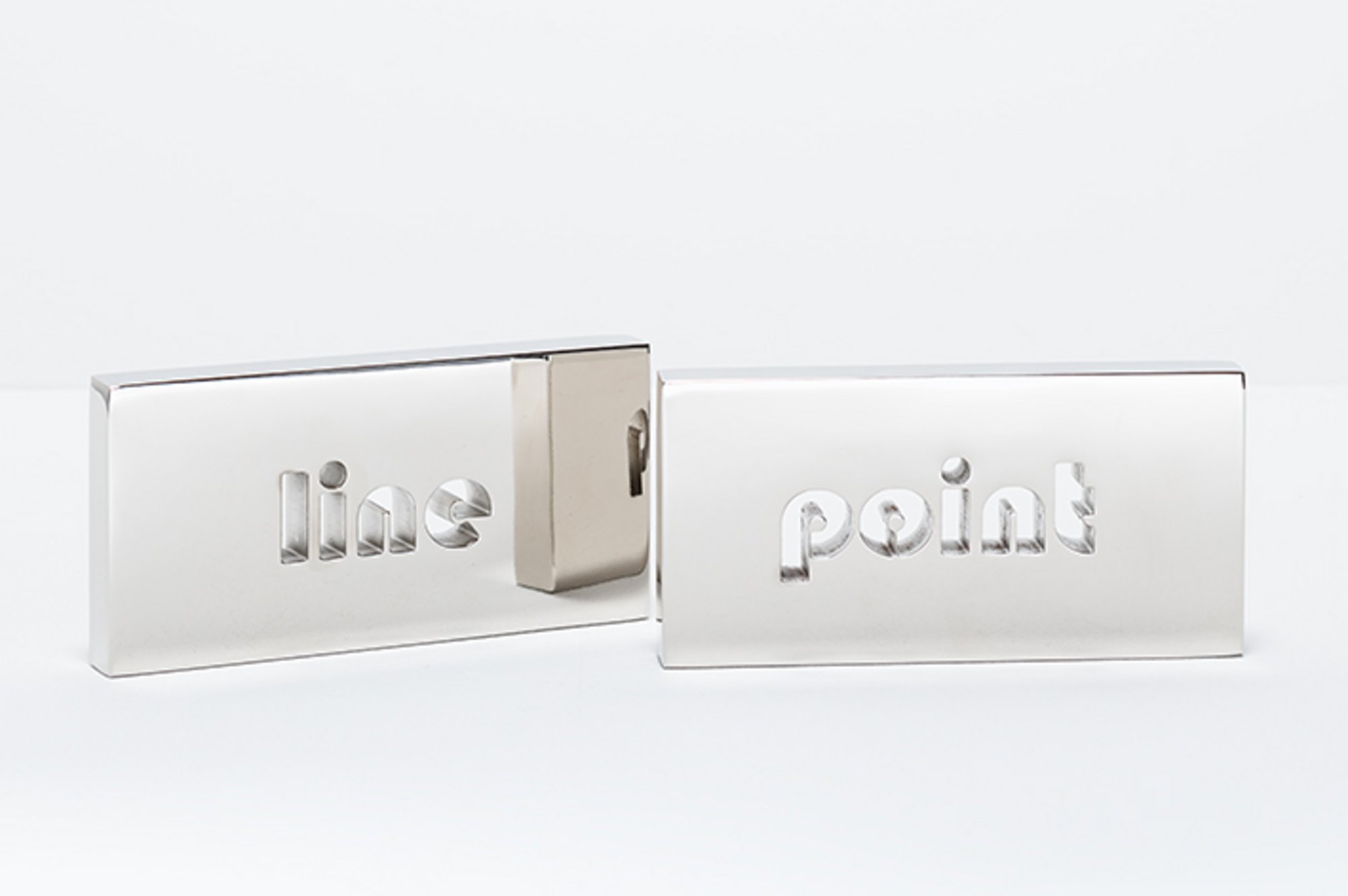 Bild: „Schriftduett“, 2021 2 Teile, Nickel patinierter Stahl, 9 x 18 x 3 cm Foto: © Jorit Aust