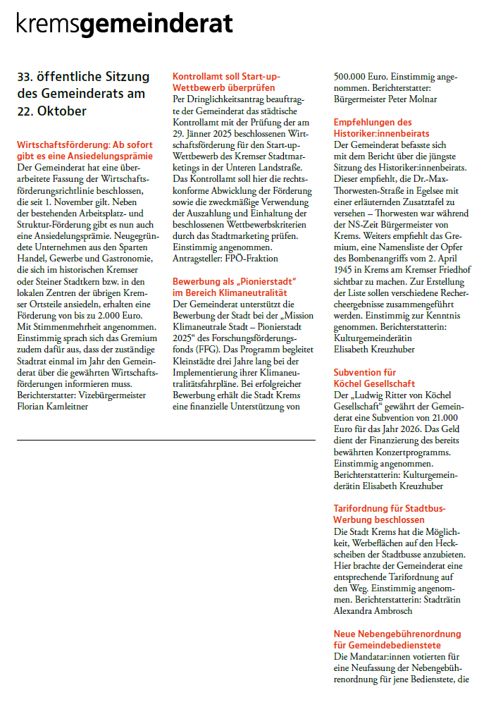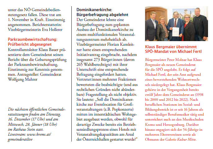 News der Stadt Krems: Kontrollamt bestätigt: GEDESAG handelt ordnungsgemäß