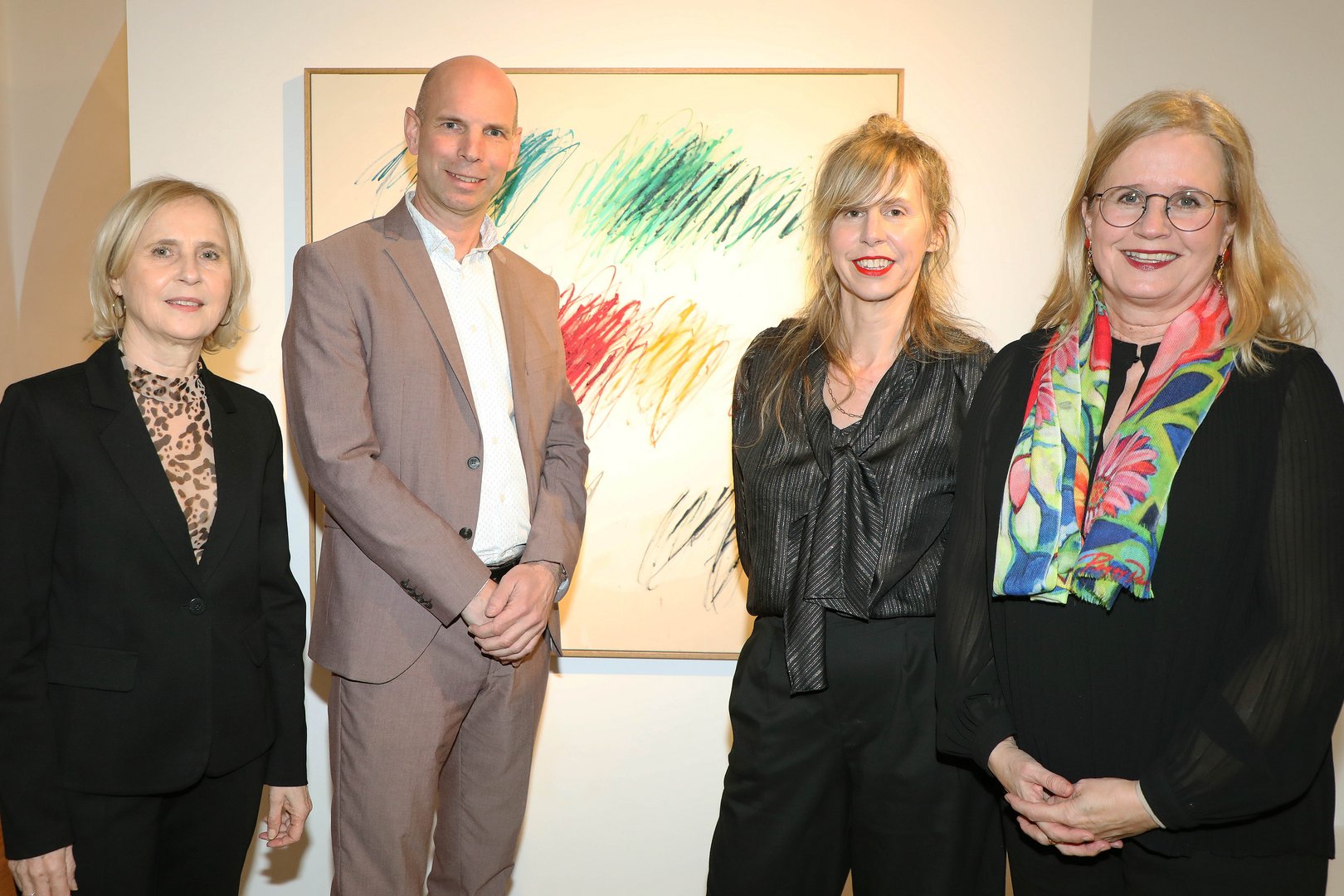 Doris Denk (Bereichsleiterin für Bildung, Kultur und Tourismus am Magistrat Krems), Kulturamtsleiter Gregor Kremser, Künstlerin Christina Gschwantner und Kulturgemeinderätin Elisabeth Kreuzhuber bei der Ausstellungseröffnung in der galeriekrems – von links.