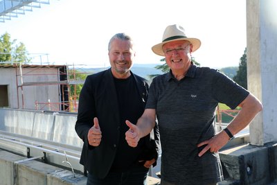Bürgermeister Peter Molnar (l.) und sein Amtsvorgänger Reinhard Resch, der den Neubau des Hallenbades in die Wege geleitet und durch jahrelangen massiven Schuldenabbau auch die Finanzierung des Megaprojekts sichergestellt hat.