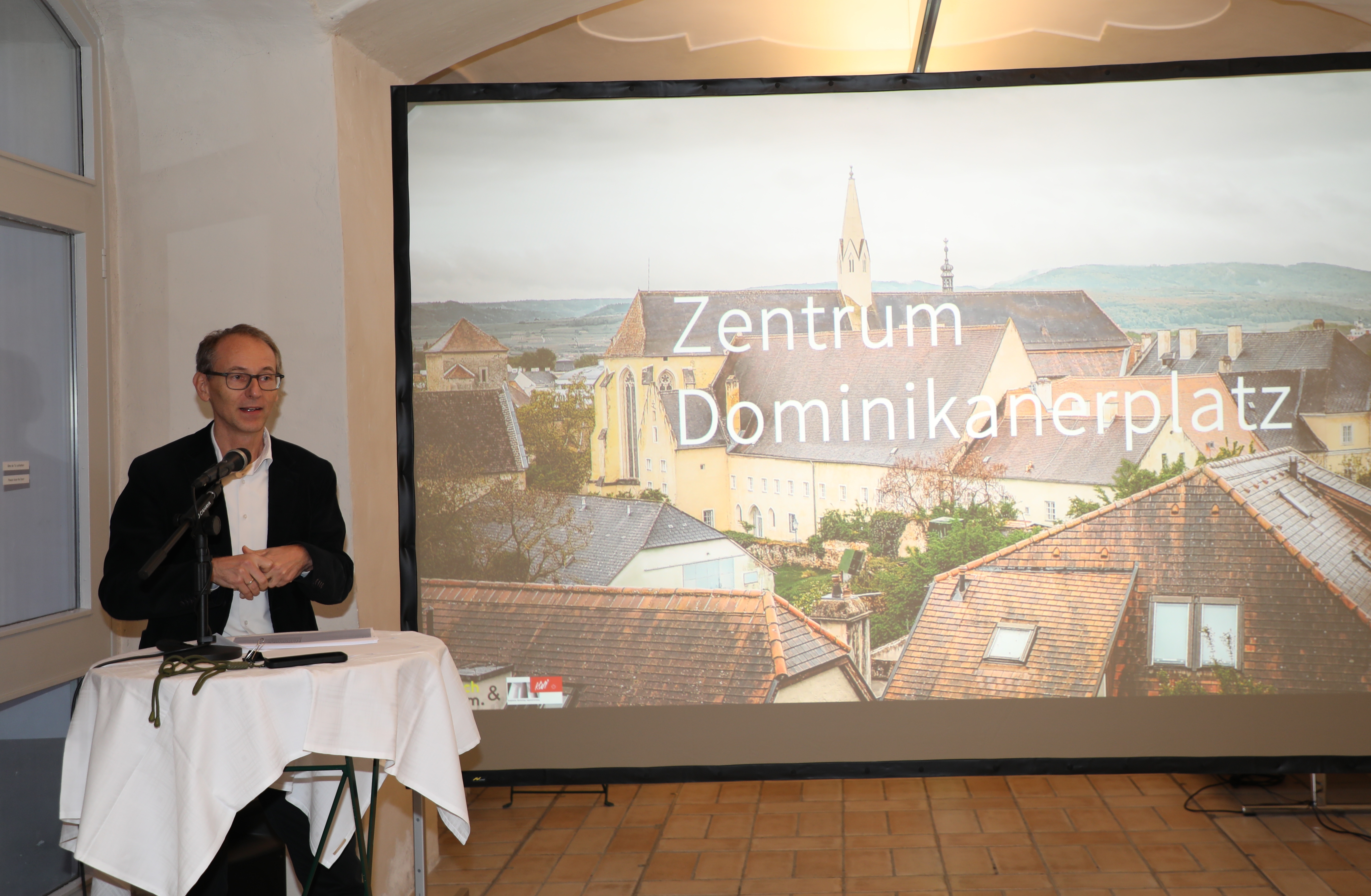 Thomas Schwed vom Wiener Architekturbüro hochform präsentierte die Machbarkeitsstudie dem Gemeinderat. Größe: 5537 x 3618 Px 4.37 MB © Stadt Krems Download