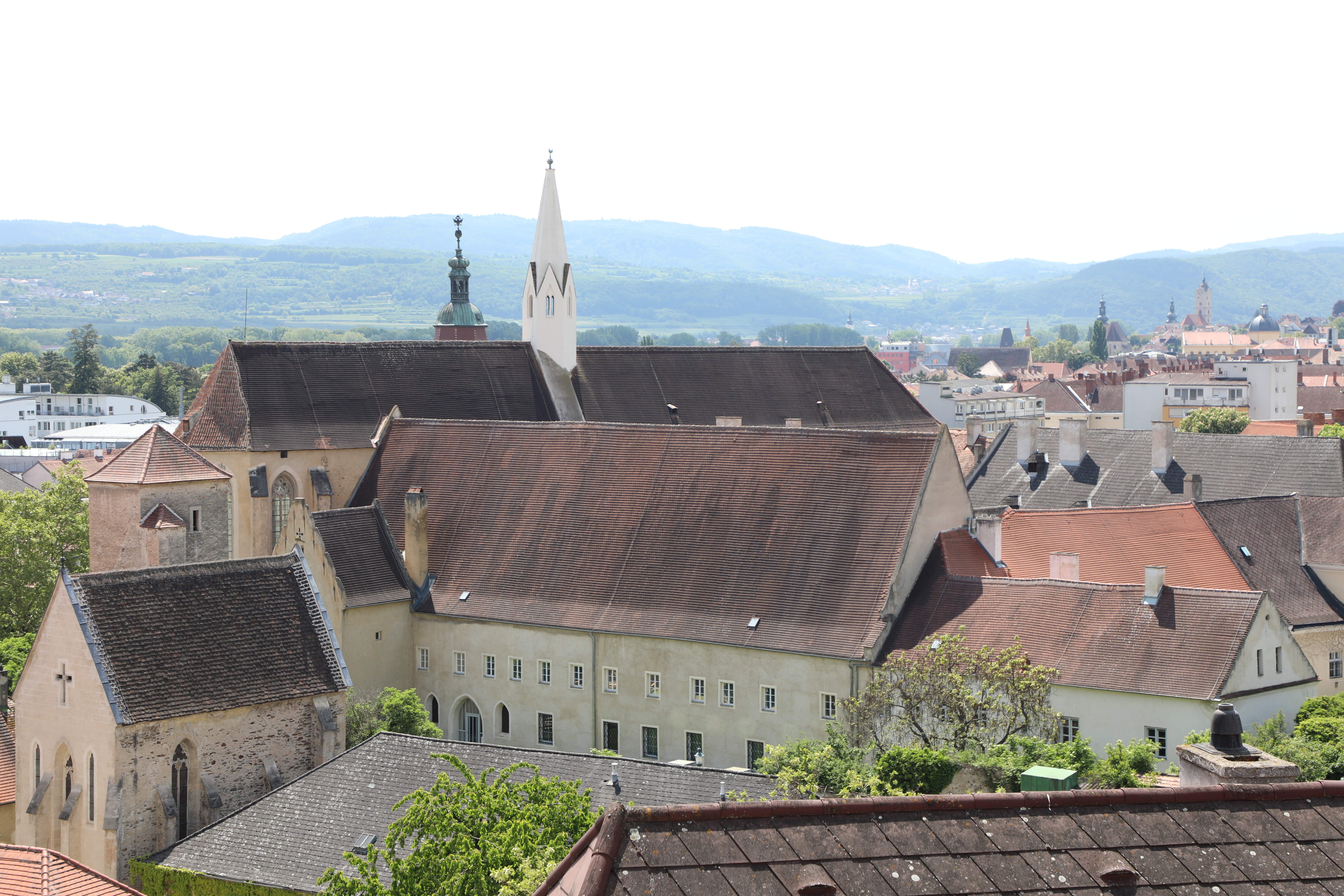 Blick von Norden auf den Dominikanerkomplex, der sich direkt im Kremser Stadtzentrum befindet. Die Kirche zählt zu den bedeutendsten Sakralbauten Niederösterreichs. Größe: 6720 x 4480 Px 4.80 MB © Stadt Krems Download