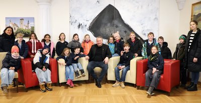 • Die 3. Klasse der ISK Krems mit ihren Betreuerinnen Chona Meier (l.) und Katharina Heiß (r.) war bei Bürgermeister Peter Molnar im Rathaus zu Gast.