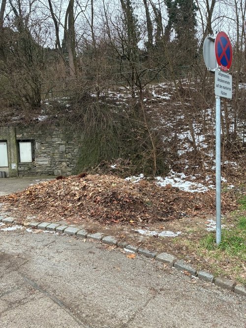 Seit vorigem Herbst wurden immer wieder die abfallenden Laubblätter seitens der Straßenreinigung eingesammelt (oftmals vom unteren Altstadtbereich), danach in die Schießstattgasse gefahren und dort auf einen kleinen Bereich gegenüber Haus Nr. 22 abgelagert. Von dort erfolgte nach einigen Tagen die Abholung durch ein Kehrfahrzeug mit Saugsystem. Seit dem Vorjahr liegt noch immer ein größerer Laubhaufen an dieser Stelle und wurde bis dato nicht abtransportiert. Mittlerweile halten des Öfteren private Fahrzeuge (zuletzt PL-Kennzeichen) und entleeren bzw. „vergraben“ dort ihren Biomüll. Unabhängig davon, ob es sich bei dem Ablagerungsort um eine öffentliche oder private Fläche handelt (da dies vor Ort nicht eindeutig erkennbar ist), stellt das verrottende Laub eine zunehmende Gefahr dar, da dieses öfters verweht wird und bei Nässe einen gefährlichen Schmierfilm auf dem angrenzenden Gehweg bildet. Es besteht auch die Sorge, dass der Haufen einen idealen Unterschlupf für Ratten und Ungeziefer bietet, was im Wohngebiet unbedingt vermieden werden sollte. Da die Ablagerung aktiv durch die Straßenreinigung erfolgte, ersuche ich Sie höflich, den Abtransport zeitnah zu veranlassen bzw. die Information an die zuständige Stelle weiterzuleiten. Vielen Dank für Ihre Unterstützung im Sinne der Sauberkeit und Hygiene in unserer Straße.