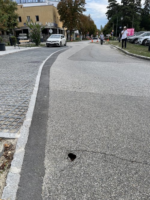 Am Südtirolerplatz hat sich in der Fahrbahn an der Westseite ein Loch gebildet. FRB
